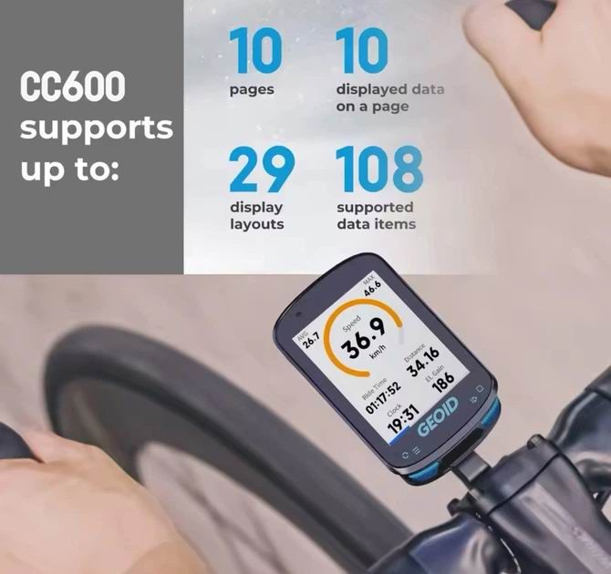 GEOID CC600 — идеальный выбор для велосипедистов, которые ищут надежное и функциональное устройство для улучшения своих показателей. Благодаря яркому экрану, развитой навигации и поддержке различных датчиков этот велокомпьютер станет вашим незаменимым помощником как во время тренировок, так и на соревнованиях.Отзывы о товаре