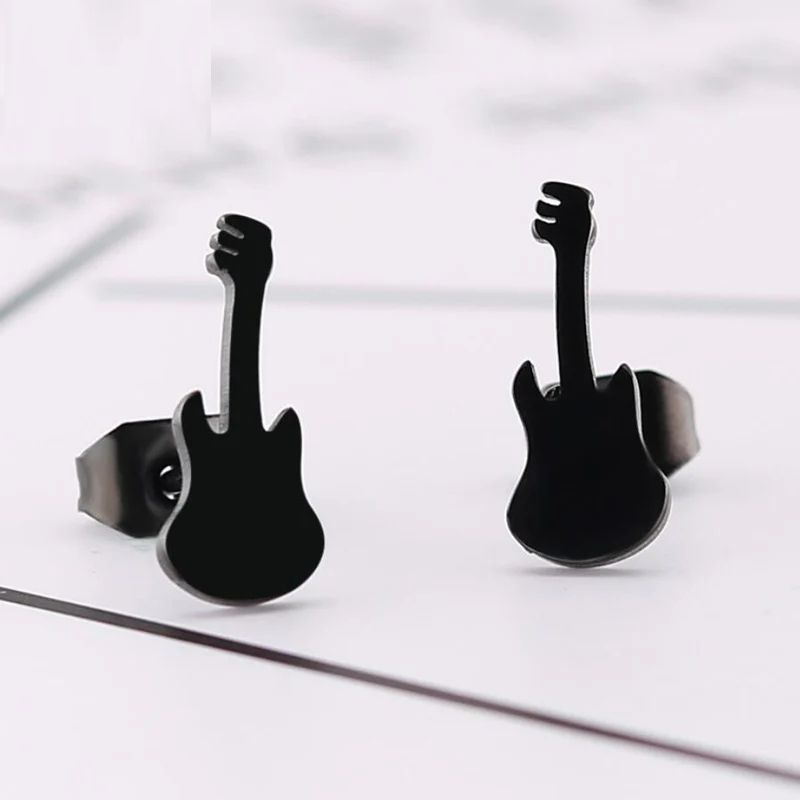 Серьги черная гитара серьги-гвоздики в виде гитары музыкальные инструменты
