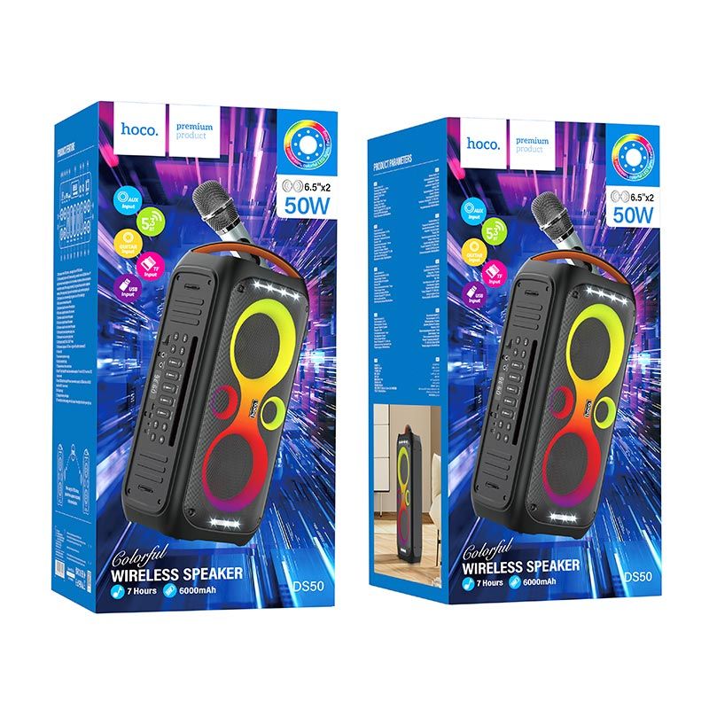 ΠΠΊΡΡΡΠΈΠΊΠ° HOCO Magnificent BT speaker DS50 |BT5.3, FM/USB/AUX/TF, 50W, 7h| black