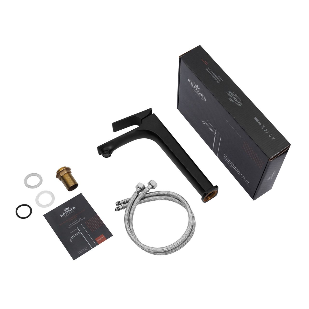 Смеситель для раковины Kroner KRP Vog-SCH010-3 (чёрный) — стильный и современный смеситель, выполненный в глубоких чёрных оттенках, который эффектно подчёркивает интерьер ванной комнаты. Графитовое покрытие создаёт эффект сдержанной элегантности и визуально гармонирует с другими элементами дизайна в стилях минимализм, модерн или лофт.