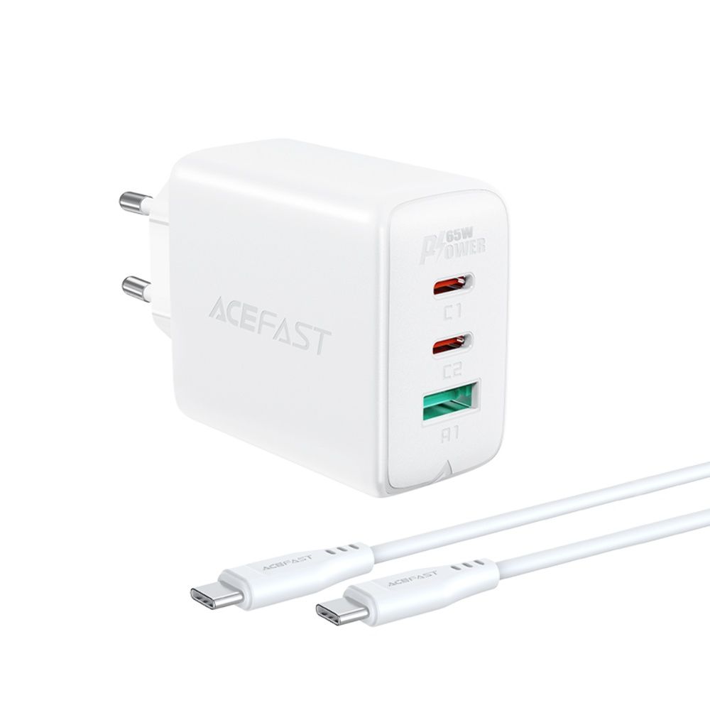 Сетевое зарядное устройство Acefast A13 USB/ 2 Type-C QC PD 65W белое + кабель Type-C to Type-C