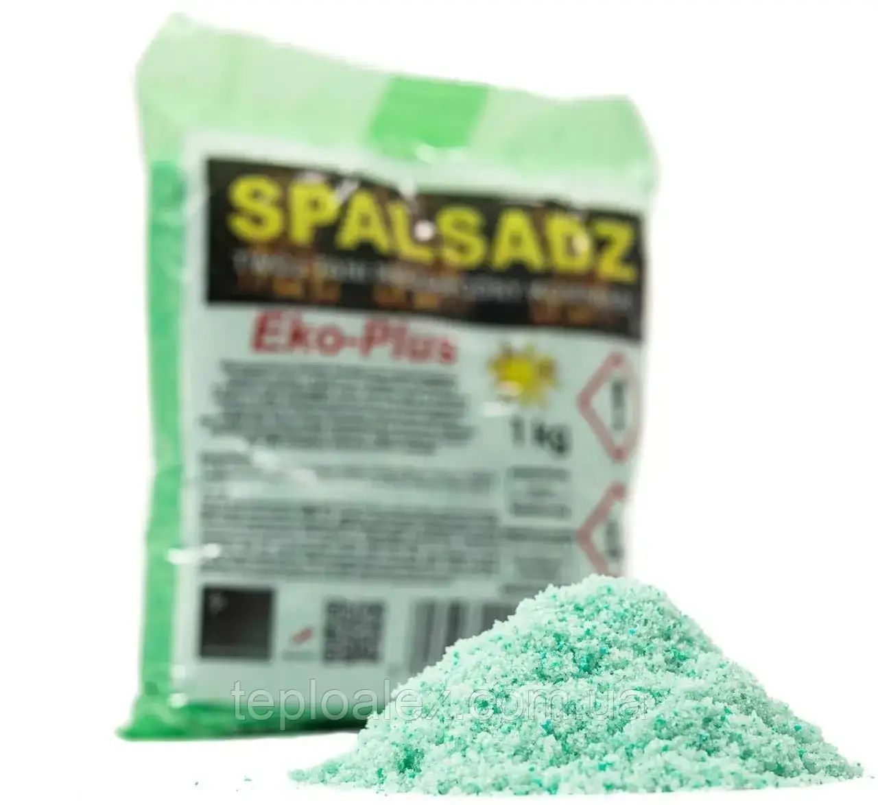 SPALSADZ высокое качество от прямого поставщика польского завода. Ощутимый эффект систематического использования порошка от сажи spalsadz заключается в улучшении теплообмена камеры сгорания, за счет отсутствия смолистых отложений на ее стенках, а значит и экономия топлива на нагрев воды в системе отопления, до 20 процентов. Порошок для чистки котлов и дымоходов spalsadz увеличивает срок службы и эффективность работы дымоходных систем, твердотопливных котлов, каминов, печей. Применение порошка от сажи в котле spalsadz гарантирует: - очистку камеры сгорания котла, - улучшение процессов горения: уменьшение оседания твердых частиц и концентрации двуокиси углерода в топочных газах, - снижение выбросов двуокиси серы, - уменьшение высоко- и низкотемпературной коррозии, - снижение запыленности. Систематическое применение средства spalsadz в количестве 1-2 кг на 1 тонну топлива гарантирует удаление отложений в котле и дымоходе, поддерживая их эффективную работу. После применения spalsadz, в результате выгорания золы, слой отложений меняет свою структуру, становится менее плотным и оседает. Новый слой отложений выгорает сразу, стенки котла остаются чистыми. Порошок для чистки дымоходов от золы и сажи spalsadz не вызывает образования глея (экраны) на нагревательных элементах – в его составе нет доломита. Порошок широко используется для очистки твердотопливных котлов, работающих на каменном угле, коксе, древесине, торфе, бурном угле. Помните. Каждый миллиметр осадков (шлака, отложений) на стенке котла увеличивает расход твердого топлива на 10%. Благодаря использованию препарата SPALSADZ, можно сэкономить до 20% расходов на топливо.