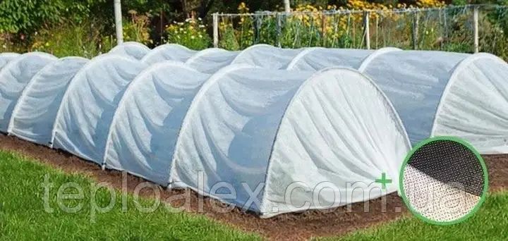 Плотность агроволокна соответствует заявленой 50г/м² Парники "Agreen" производится из качественного польского агроволокна (спанбонда). Парники из агроволокна "Agreen" славятся в первую очередь своим качеством. Конструкция парника проста, но надежна, поэтому собрать его самостоятельно абсолютно не сложно. Дуги парника легко вставляются в землю, а клипсы и колышки делают мини-теплицу устойчивой к ветру и осадкам. Высококачественное агроволокно польского производства может прослужить более 10 лет. После окончания использования парника его необходимо очистить от крупного мусора, при необходимости агроволокно постирать в стиральной машине, чтобы выглядел он как новый. Дуги парника изготовлены из специальной пластмассы с добавками, которые защищают от разрушения солнечными лучами и ультрафиолетом, являются прочными, и в тоже время гибкими и эластичными. Для чего используется парник из агроволокна : Он используется для защиты от заморозков до -7 градусов (в зависимости от плотности агроволокна); Парник защищает растения от летнего палящего солнца, при этом пропуская до 93 % солнечного света; Мини-теплица удерживает влагу внутри парника, при этом пропускает дождевую воду; Защищает от жуков, птиц и других вредителей. Комплектация: Полотно(агроволокно), Колышки, Скобы, Дуги(ПНД). Парники из агроволокна имеют ряд преимуществ ускоряют рост саженцев сохраняют рассаду до -7 гр. пропускают до 93 % солнечного света не задерживают воздух и влагу предотвращает появлению вредителей не гниет, стойкий к кислотам и удобрениям защищает от снега и града легко собирать и разбирать пригоден для стирки в стиральной машине эластичные стойкие к УФ лучам дуги ударопрочные колышки прочная фиксирующая клипса