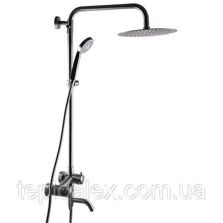 Душевая система для ванны с ручным и тропическим душем, а также смесителем и изливом Преобразите свой ежедневный ритуал водных процедур в удивительный опыт релаксации с нашей душевой системой для ванны, которая сочетает в себе современный стиль, функциональность и высочайшее качество. Наша душевая система удовлетворит все ваши потребности благодаря уникальному сочетанию ручного душа, тропического душа, смесителя и излива, обеспечивая вам максимальный комфорт и удовольствие во время принятия ванны. Особенности: Ручной душ: Наслаждайтесь свободой выбора между мягким и напористым душем благодаря ручному душу с различными режимами струи. Идеально подходит для удобного мытья волос, тела и для местного нанесения воды. Тропический душ: Погрузитесь в ощущение летнего дождя с тропическим душем, который создает широкий и расслабляющий поток воды, окутывая ваше тело нежным облаком капель и обеспечивая непревзойденное удовольствие. Смеситель : Настройте температуру воды точно под ваше предпочтение с помощью смесителя, обеспечивая комфорт во время принятия ванны. Излив для ванны: Изысканное наполнение вашей ванны легко и элегантно благодаря изливу, который обеспечивает равномерное и плавное наполнение, создавая расслабляющую атмосферу. Прочные материалы и стильный дизайн: Изготовленная из высококачественных материалов, наша душевая система сочетает в себе долговечность и эстетику, добавляя шик и современный стиль в вашу ванную комнату. Комплектация душевой системы: смеситель из нержавеющей стали, верхний душ держатель для душа, душевая штанга, кронштейн, переключающий вентиль, ручная лейка, шланг душевой Гарантия: 60 месяцев официальной гарантии от производителя.