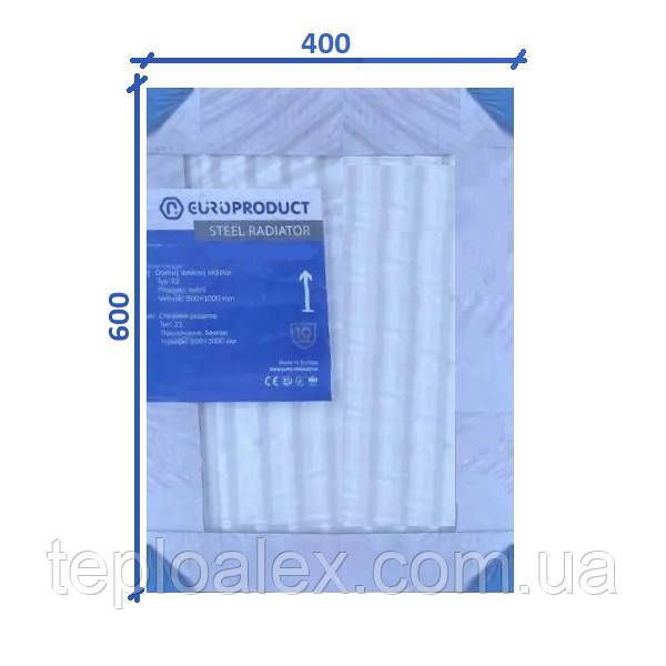 Стальной радиатор 600x400 22тип боковое подключение панельный EUROPRODUCT батарея панельная стальна