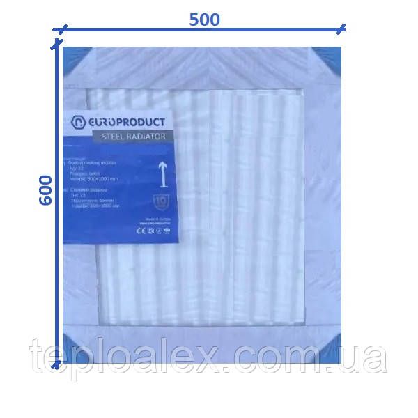 Стальной радиатор 600x500 22тип боковое подключение панельный EUROPRODUCT батарея панельная стальна