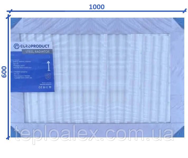Стальной радиатор 600x1000 22тип боковое подключение панельный EUROPRODUCT батарея панельная стальна