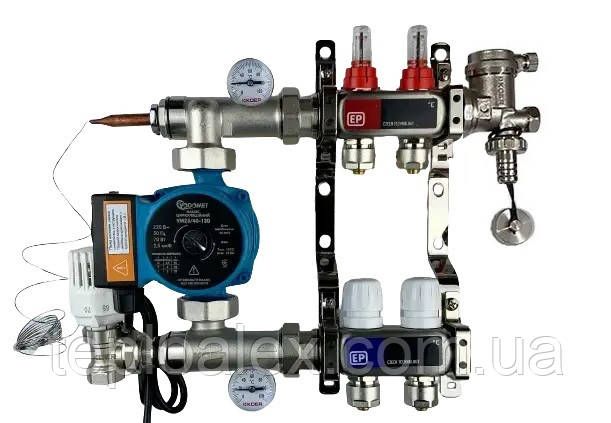 Коллектор с насосом на 2 контура теплого пола медная обмотка гребенка 2 выхода koer