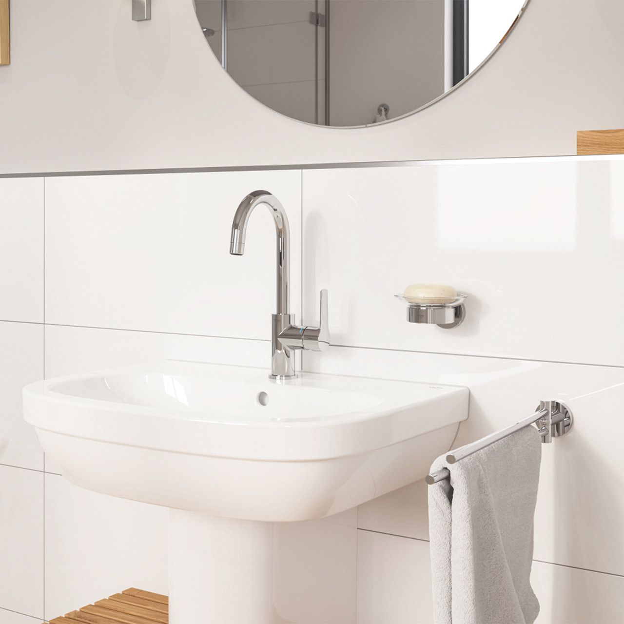 GROHE Long-Life Finish: Хромированное покрытие GROHE Long-Life Shine обеспечивает стойкость к истиранию, легкость ухода и сохранение блеска продукта на протяжении долгого времени.