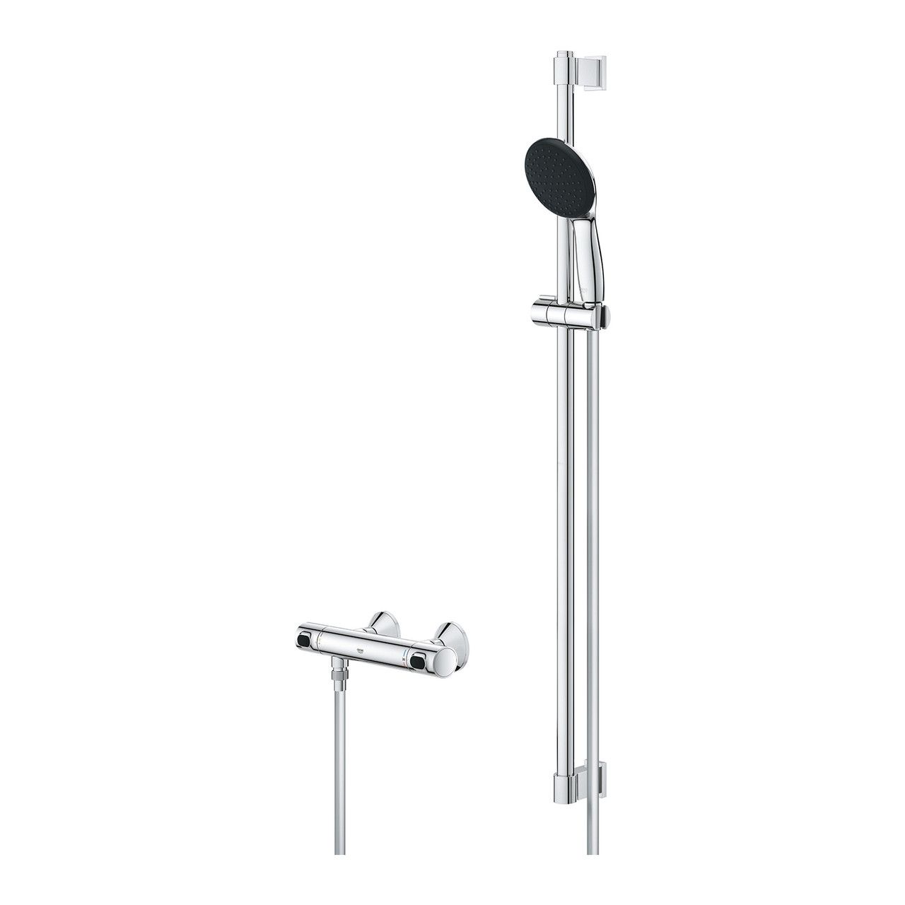 Термостатический смеситель для душа с душевым гарнитуром Grohe QuickFix Precision Flow 34805001 - это передовой комплект для душа, который приносит изысканный дизайн и технологическую эффективность в вашу ванную комнату. В комплект входит термостатический смеситель GROHE Precision Flow, ручной душ Vitalio Start 110, штанга длиной 900 мм и гибкий шланг длиной 1750 мм. Технология термостата GROHE гарантирует постоянную и стабильную температуру воды, предотвращая резкие изменения. Кнопка GROHE SafeStop, установленная на 38°C, предотвращает случайное повышение температуры воды, что особенно актуально для семей с детьми. Дополнительный ограничитель температуры GROHE SafeStop Plus можно установить на 43°C для дополнительного уровня безопасности. Функция GROHE Water Saving позволяет экономить воду и электроэнергию. Ручной душ предоставляет успокаивающий режим Rain с технологией GROHE DreamSpray, которая равномерно распределяет поток воды на каждой форсунке. Функция ограничения потока позволяет экономить воду, сохраняя производительность. Защитное покрытие GROHE SpeedClean и силиконовое кольцо ShockProof обеспечивают долгосрочную эффективность и защиту от повреждений. Штанга оснащена скользящим поворотным держателем, который облегчает регулировку высоты и угла наклона душа. Установка легка благодаря системе QuickFix, и для этого не требуются инструменты. Смеситель можно установить с помощью QuickSpanner, а штангу можно прикрепить или приклеить с использованием клея GROHE QuickGlue Set S (продаётся отдельно). Максимальная нагрузка до 20 кг, что делает этот душевой комплект надежным и удобным в использовании на протяжении многих лет. Обновите свою ванную комнату с смесителем и гарнитуром Grohe QuickFix Precision Flow для непревзойденного комфорта и стиля.