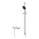 КомплектацияСмеситель, душевая стойка, лейка для ручного душа, кронштейн для ручного душа, душевой шланг, крепеж.