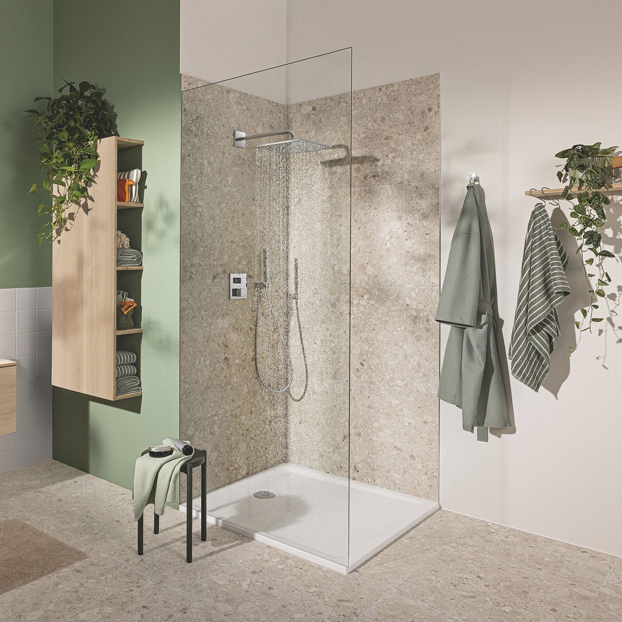 Вся система обладает высоким качеством и долговечностью, благодаря хромированной поверхности с технологией GROHE Long-Life Shine, которая легко чистится и сохраняет потрясающий вид на протяжении всего срока службы. Благодаря инновационным технологиям, таким как GROHE DreamSpray и SpeedClean, обеспечивается равномерный поток воды и противодействие известковым отложениям.