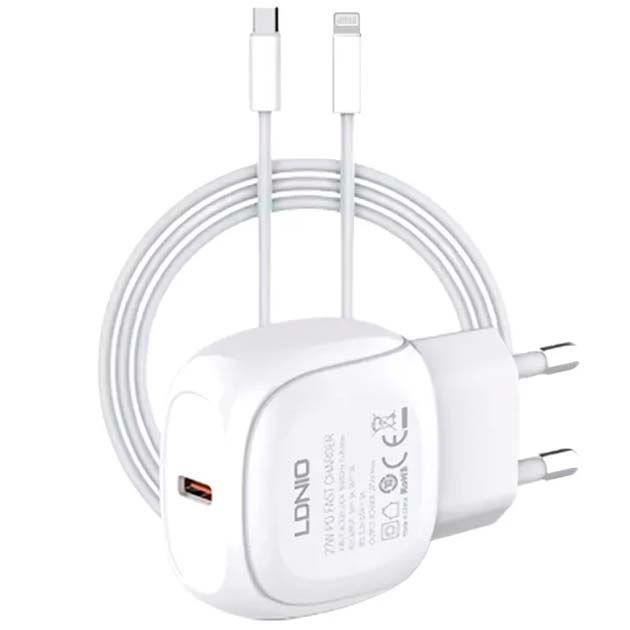 Сетевое зарядное устройство Ldnio A1206C Type-C PD 27W белое + кабель Type-С to Lightning