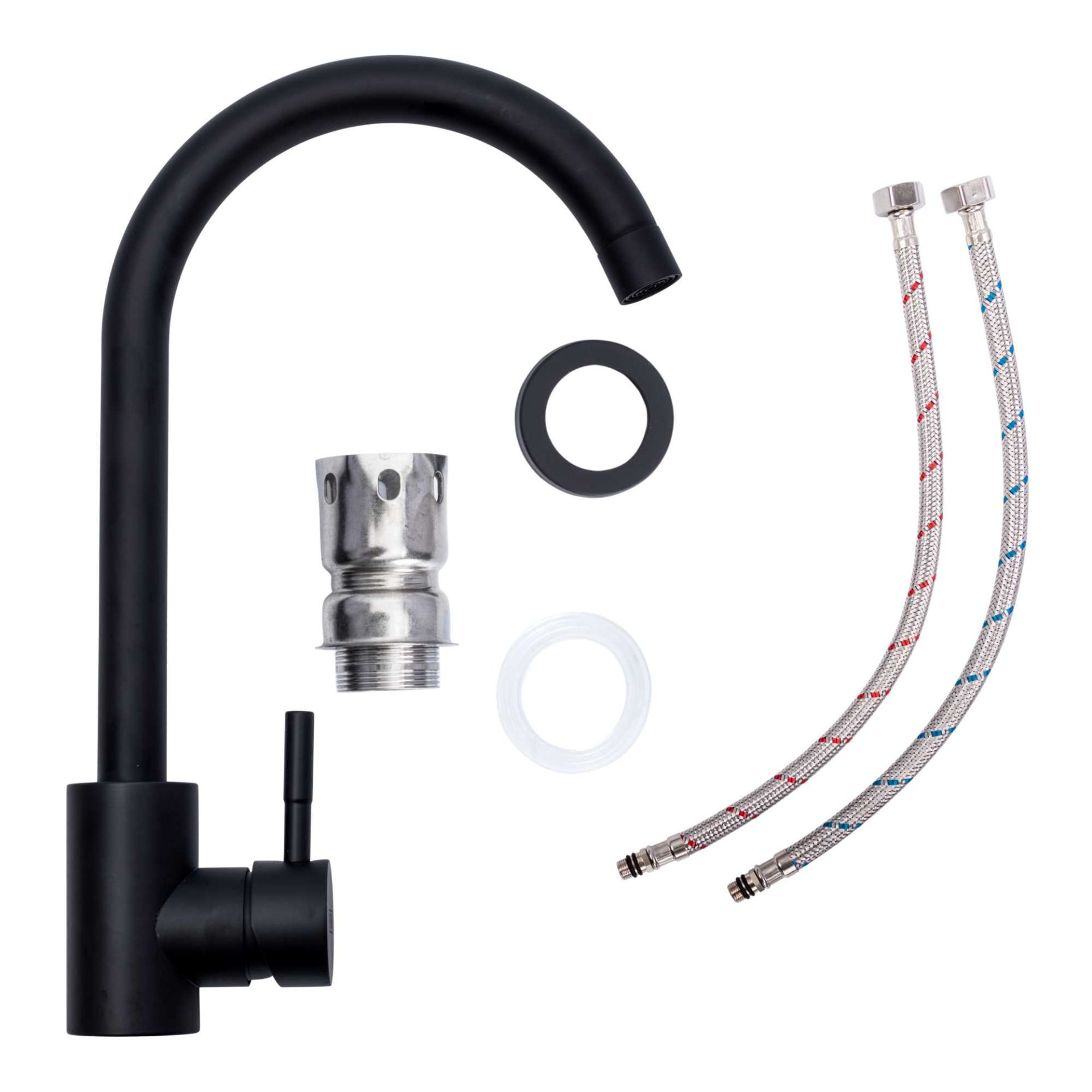 Монтаж: В комплект входят два шланга (50 см), крепления, прокладка и гайки для быстрой установки.