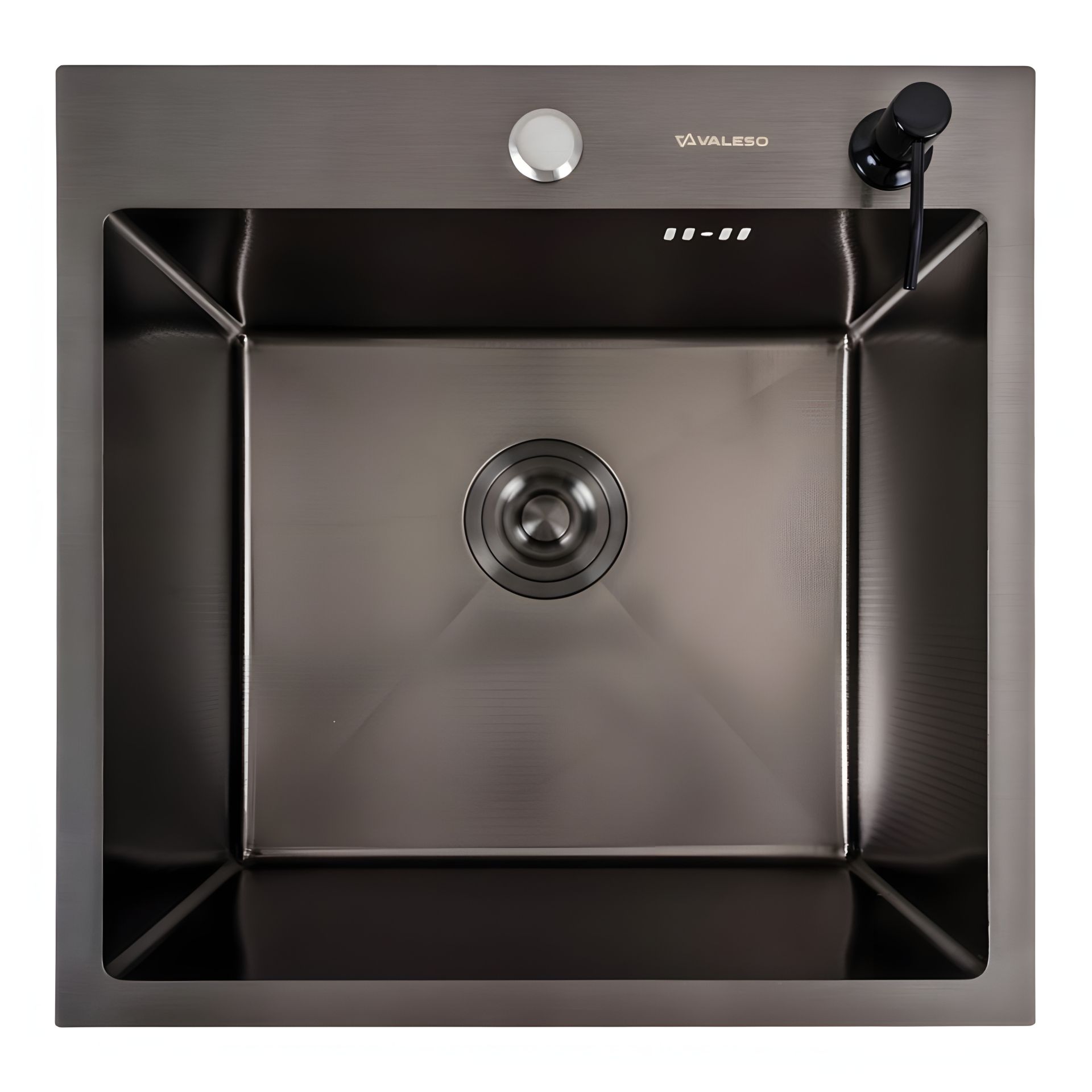 Кухонная мойка комплект VALESO Handmade 40*50 PVD черная (3.0/0.8) + Смеситель VALESO BG77 черный