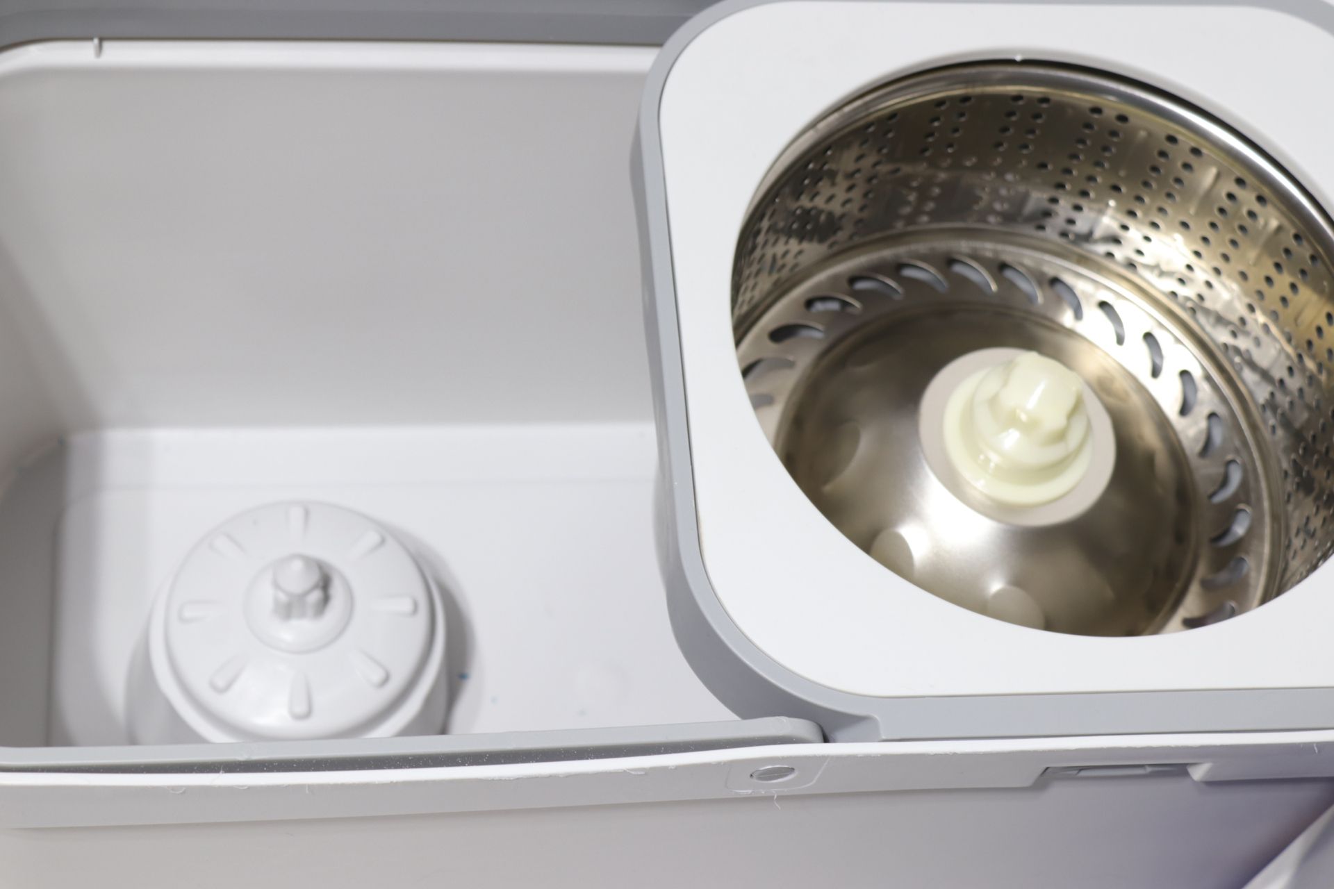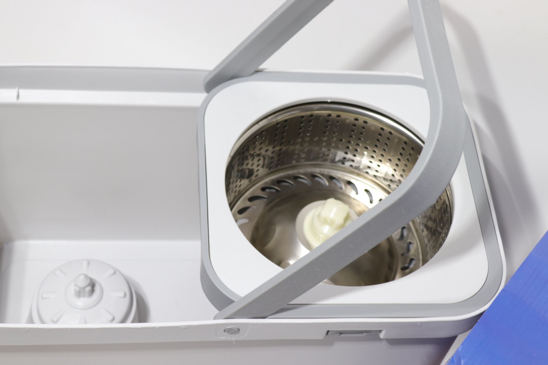 - ведро имеет 2 отделения, одно для полоскания и другое, с металлической центрифугой, для отжима воды.
