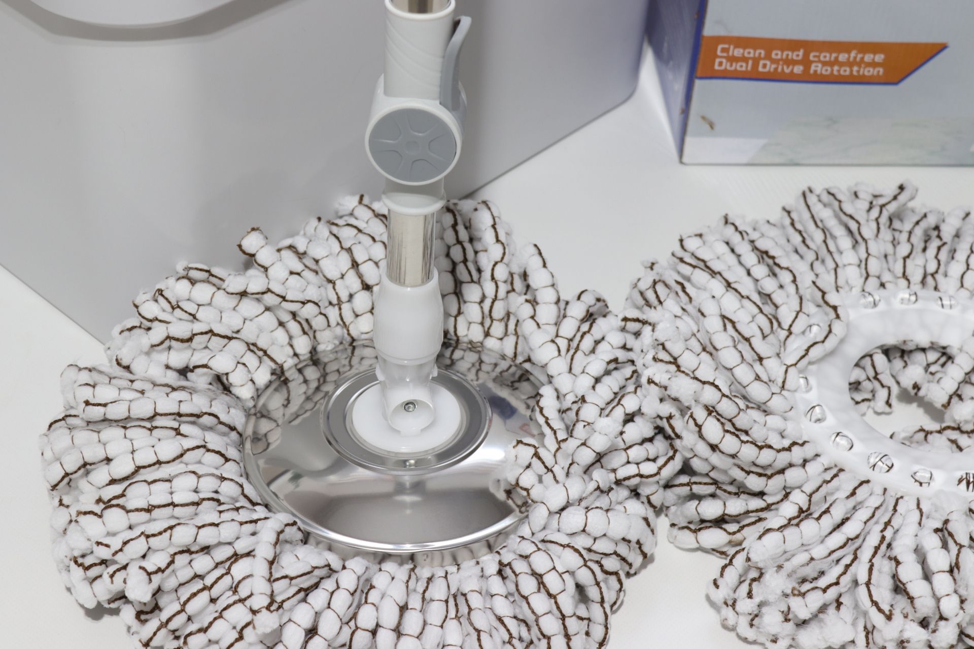 - швабра со встроенным поворотным механизмом длиной 110 см. В комплект входят 2 насадки d -35 см из микрофибры, которые хорошо впитывают воду и не оставляют разводов. Швабра универсальна по назначению и подходит для любой поверхности пола.