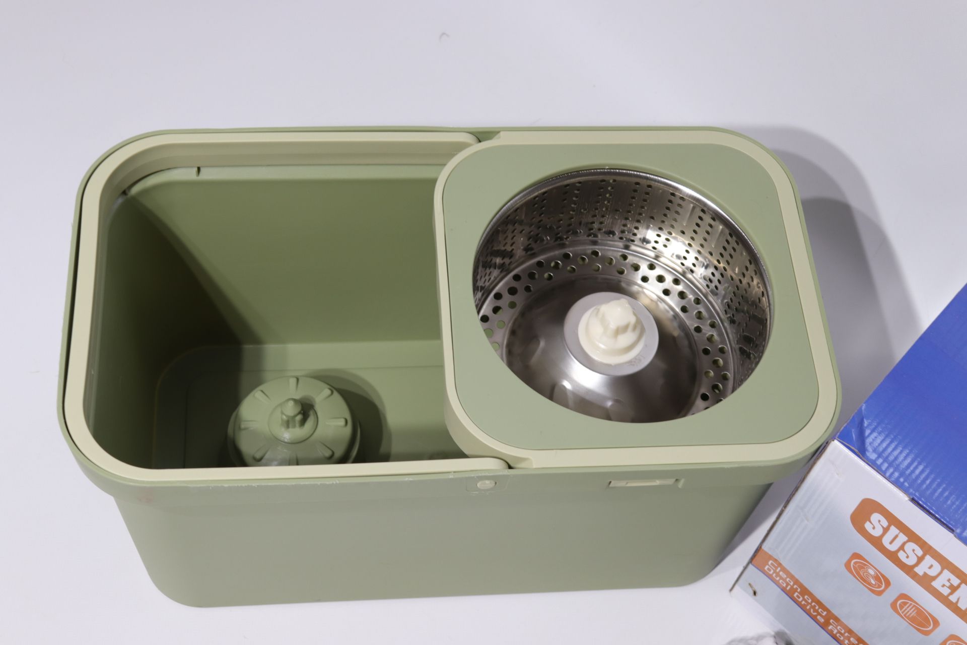 - ведро имеет 2 отделения, одно для полоскания и другое, с металлической центрифугой, для отжима воды.