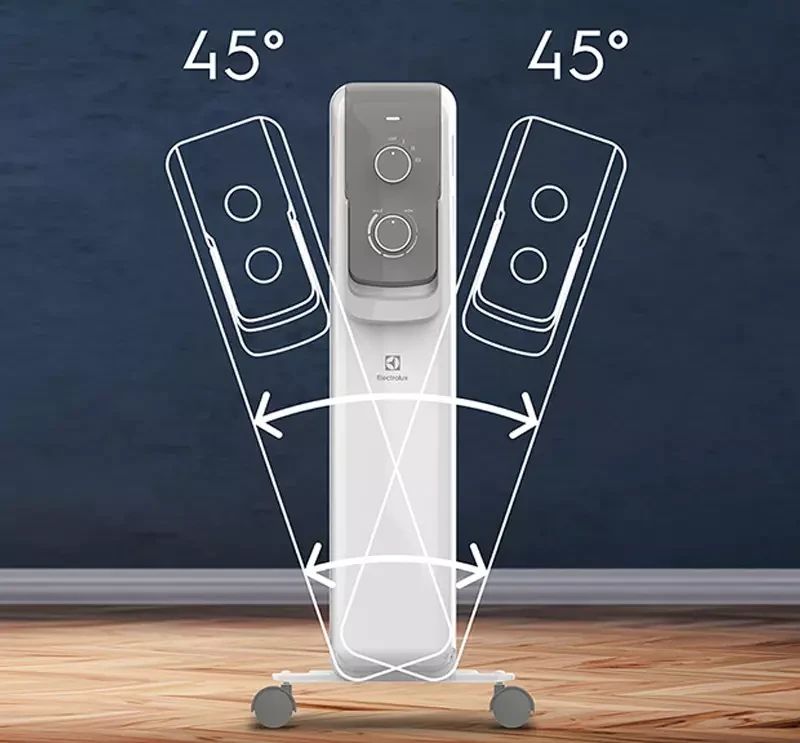 Встроенный сверхчувствительный датчик отключает масляный радиатор при наклоне более 45 градусов.
