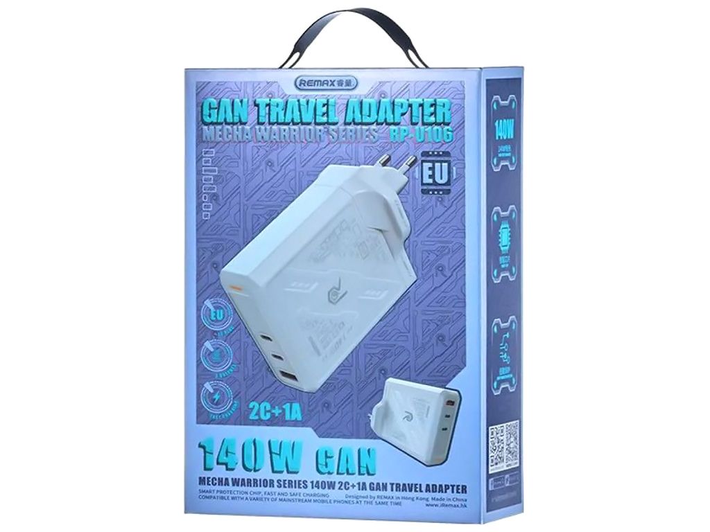 Remax RP-U106 — это высокомощный универсальный адаптер, предназначенный для быстрой и безопасной зарядки ноутбуков, смартфонов, планшетов и другой портативной электроники. Модель построена на базе современных полупроводников из нитрида галлия (GaN), что обеспечивает компактные размеры, высокую энергоэффективность и стабильную работу без перегрева даже при максимальной нагрузке.