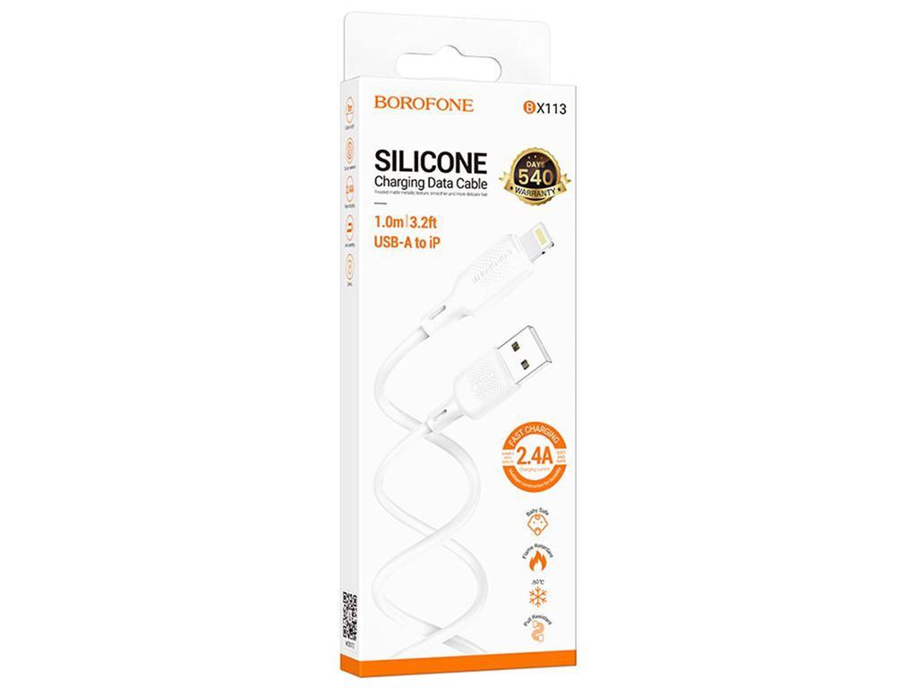 USB Borofone BX113 Silicone Lightning 2.4A Белый