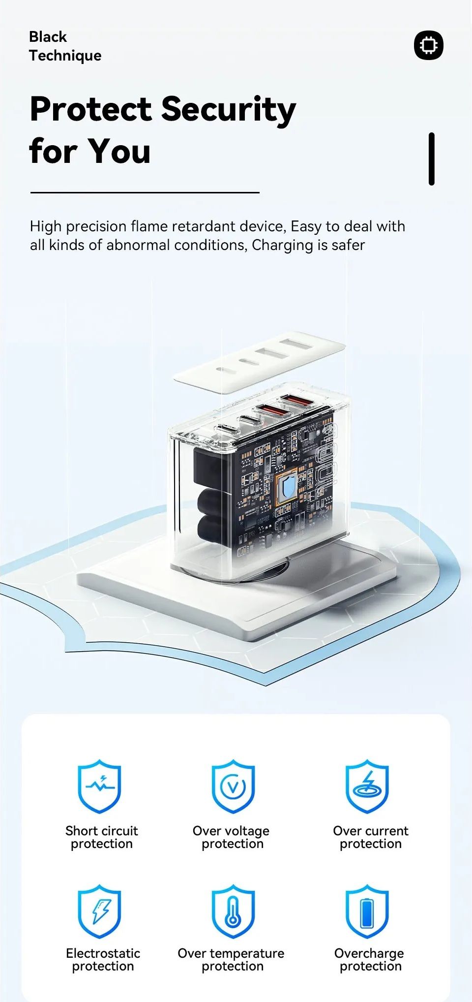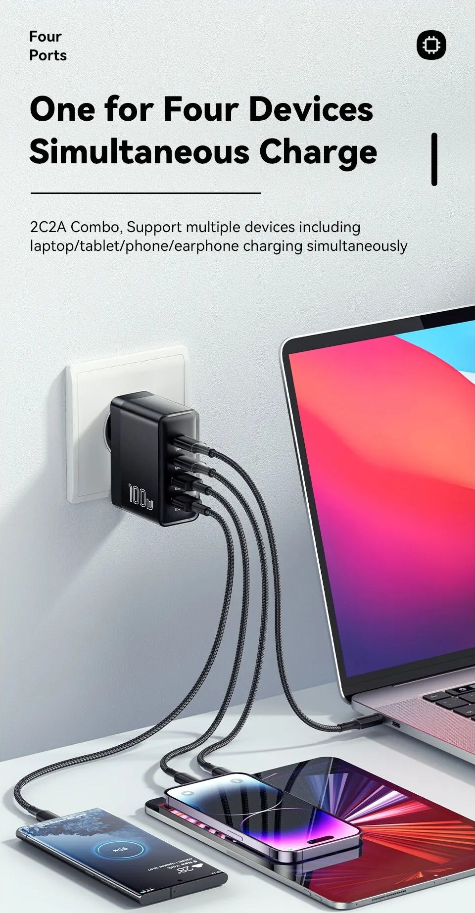 Это мощное и компактное сетевое зарядное устройство является универсальным решением для одновременной зарядки ноутбуков, смартфонов, планшетов и других гаджетов. Благодаря передовой технологии GaN оно обеспечивает высокую эффективность, компактные размеры и надежную защиту при работе.