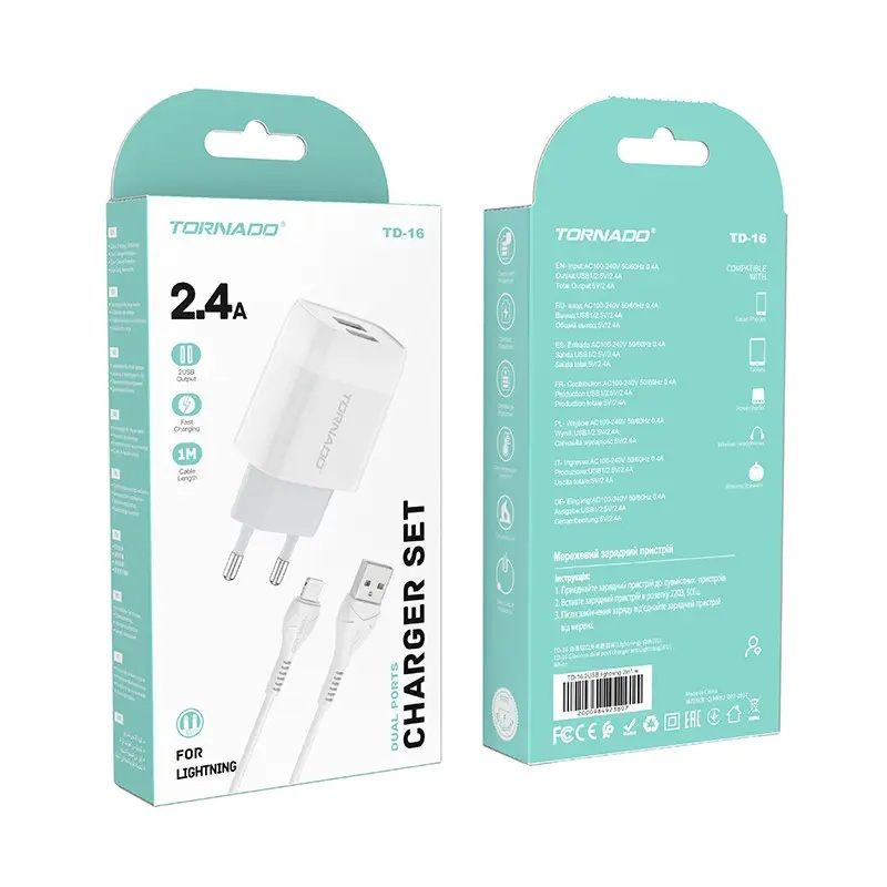 Зарядное устройство Tornado TD-16 2USB Lightning White
