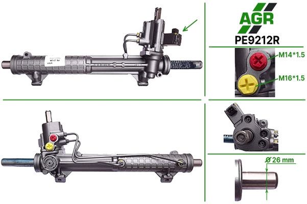 Рулевая рейка с ГУР, восстановленная, PEUGEOT 406 1995-2004, AGR (PE9212R)