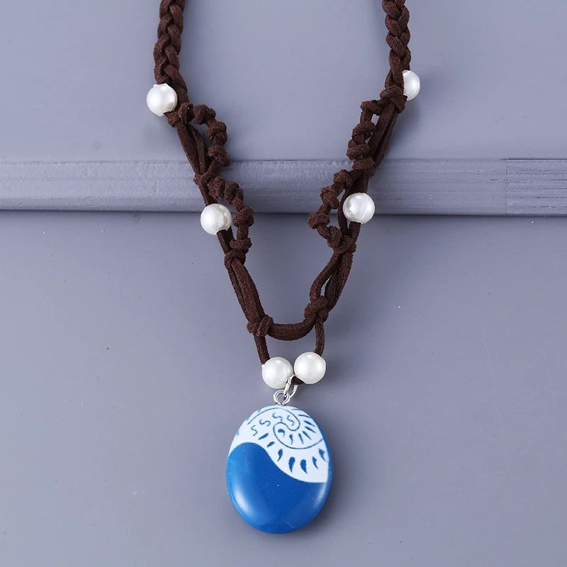 Кулон Моана океан веревка подвески из синего камня кожаное замшевое ожерелье из мультфильма Моана Ваяна