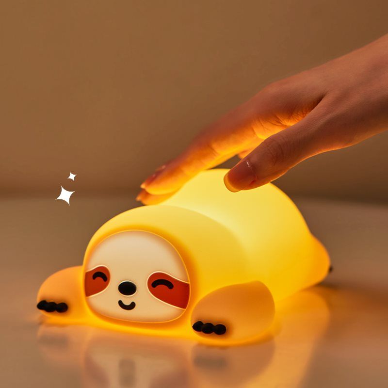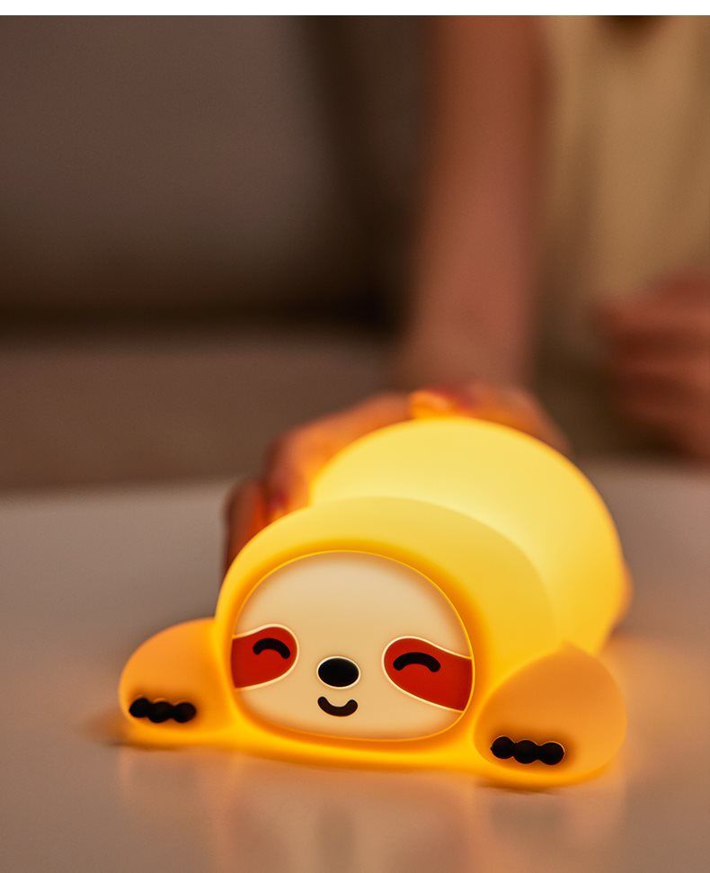 Обаятельный и спокойный ленивец от бренда VALESO станет идеальным компаньоном для вашего ребенка во время отдыха. Изделие выполнено в теплом желтом цвете и изготовлено из высококачественного пищевого силикона. Этот материал невероятно мягкий, гипоаллергенный и абсолютно безопасный — ночник можно обнимать или сжимать, он мгновенно возвращает свою первоначальную форму.