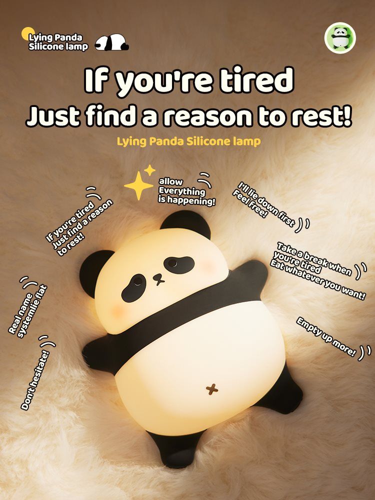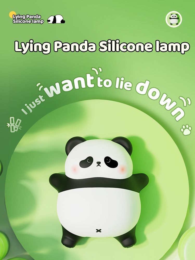 Ночник силиконовый сенсорный игрушка Лежащая на спине панда A008 VALESO детский для спальни бело-черный