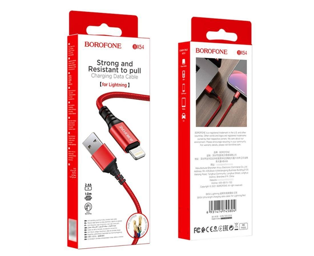 Кабель Borofone BX54 USB to Lightning 1m красный