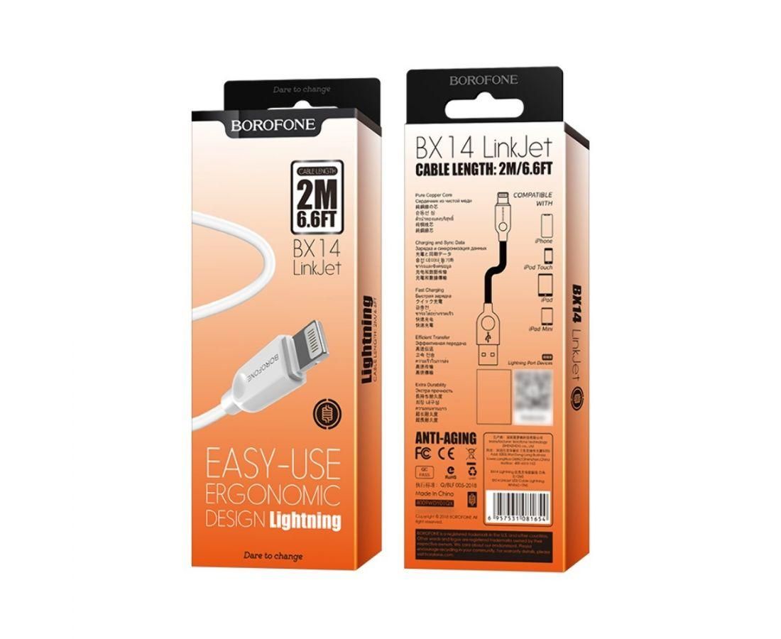 Кабель Borofone BX14 USB to Lightning 2m белый