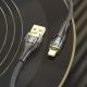 - Сочетание черного цвета, прозрачных элементов и подсветки делает этот кабель стильным аксессуаром для техники Apple.
