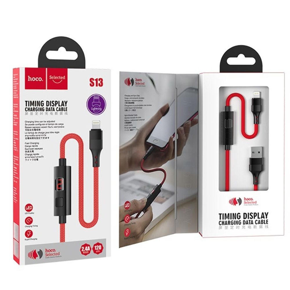Кабель Hoco S13 с таймером USB to Lightning 1.2m красный