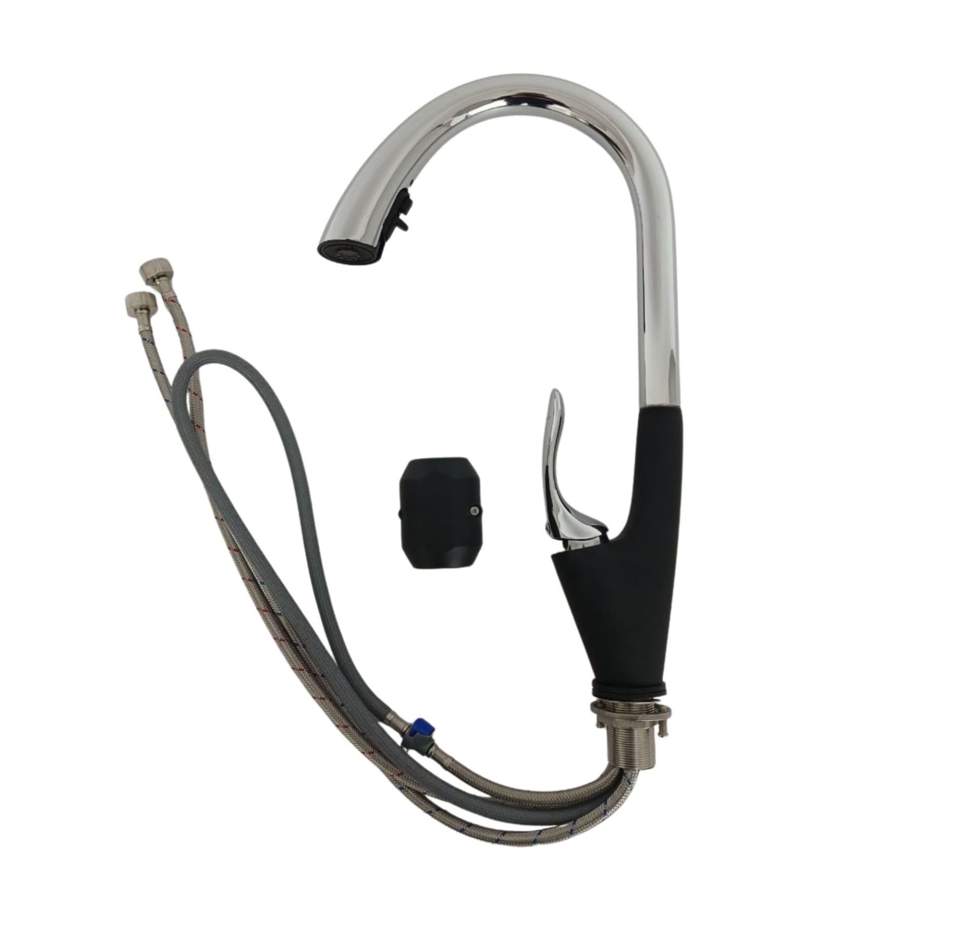 Смеситель кухонный с выдвижным изливом VALESO OB-D91C (хром/черный мат, латунь)