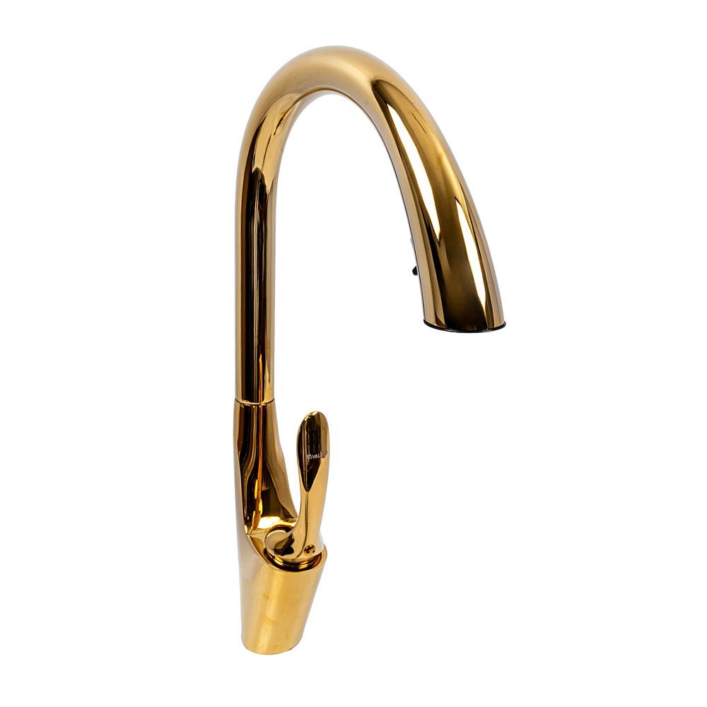 Смеситель кухонный с выдвижным изливом VALESO OB-D91B (PVD золото, латунь)