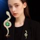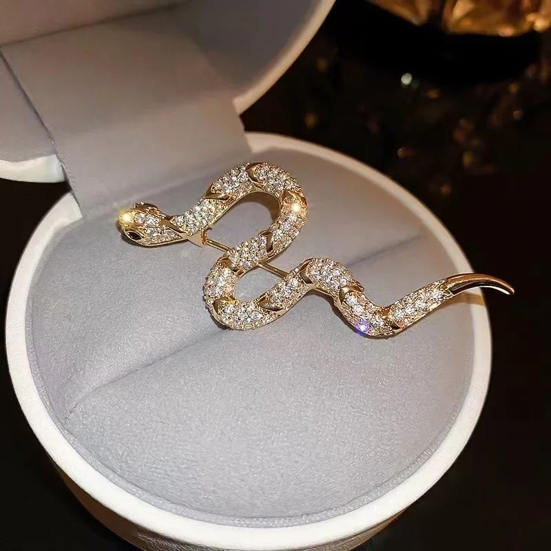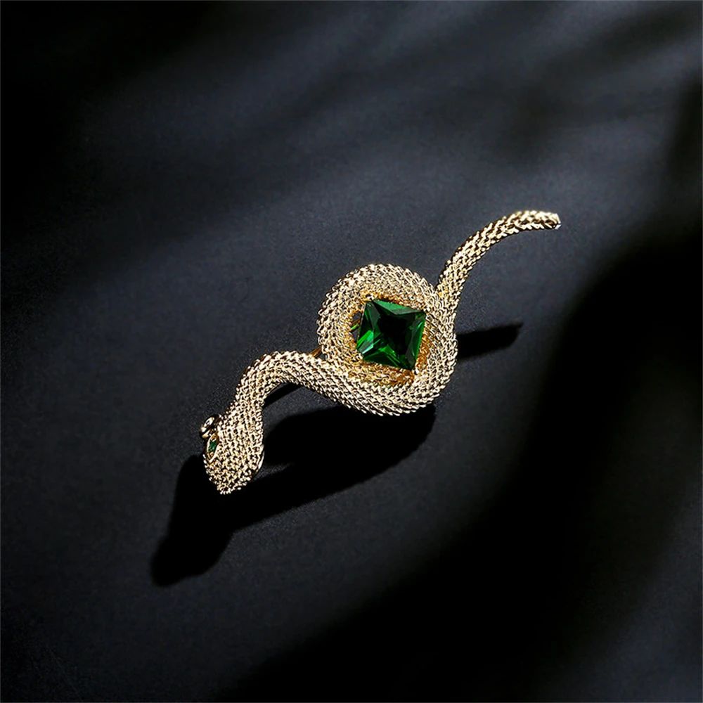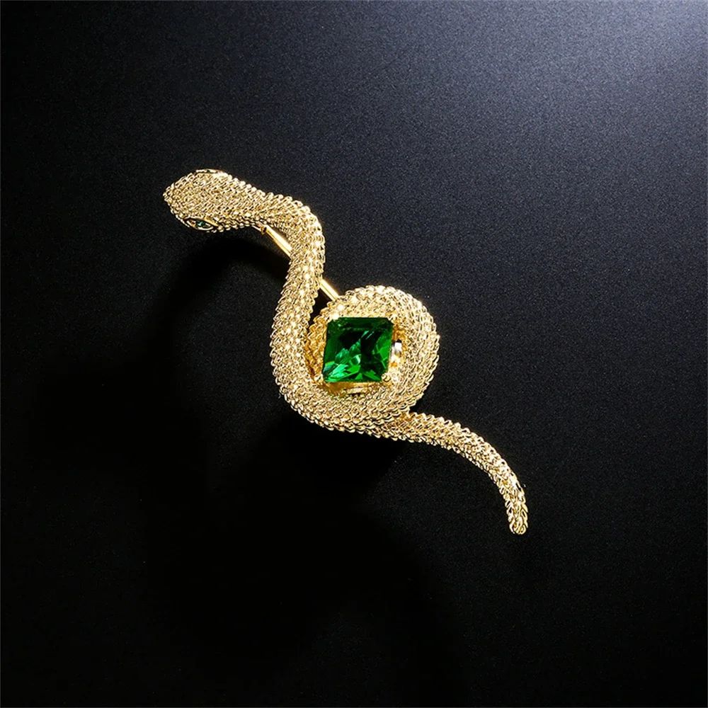 Брошь змея булавка со змеей 3 вида золотистая с зелеными кристаллами