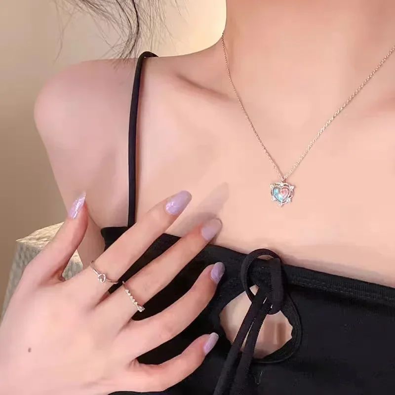 Кулон в форме сердца и лунный камень подвеска сердце с градиентом кристаллы
