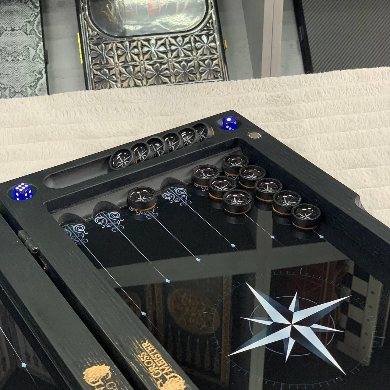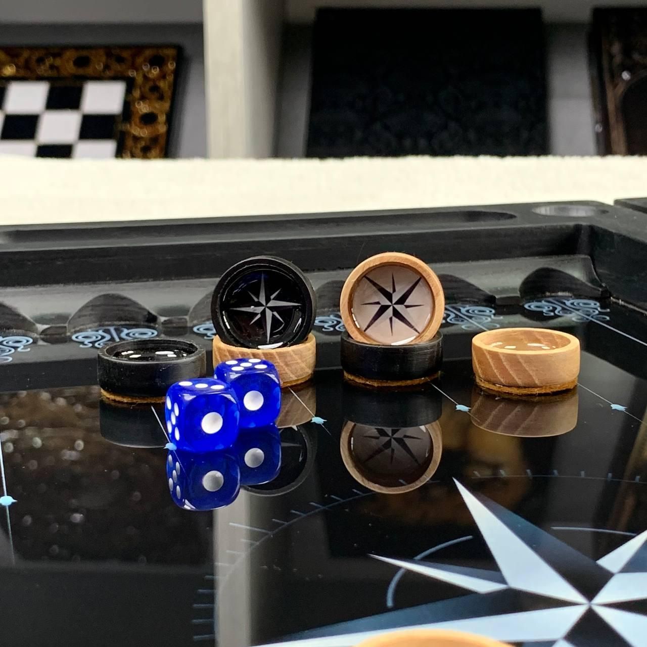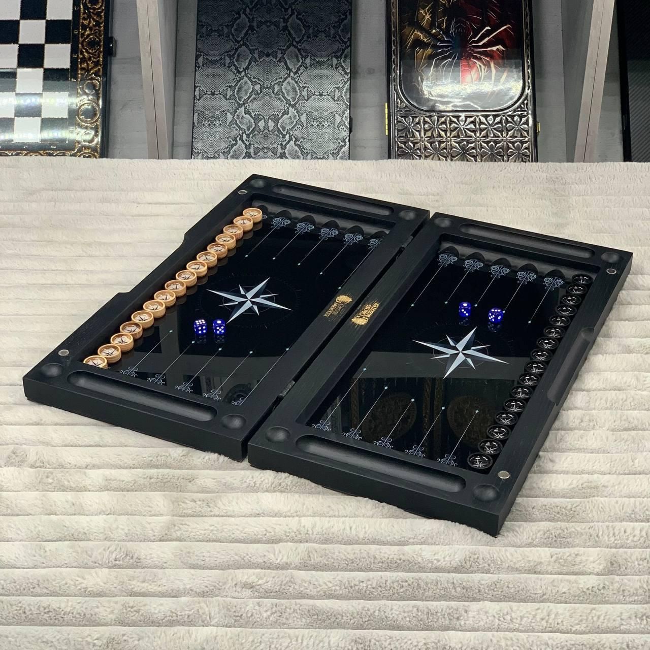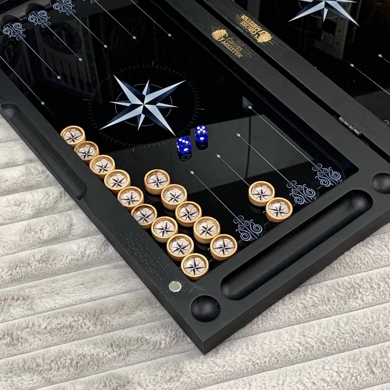Нарды деревянные со стеклом "РОЗА ВЕТРОВ", 50×24×6см, арт. 270045 Эти нарды – не просто настольная игра, а настоящее произведение искусства, сочетающее классический дизайн и современные материалы. Выполненные из дерева со стеклянным игровым полем нарды подходят для тех, кто ценит эстетику, стиль и качество. Уникальный рисунок, нанесенный с помощью УФ-печати, придает изделию особый шарм, а возможность персонализации позволяет сделать его абсолютно индивидуальным. Это идеальный подарок для близких или элегантный элемент декора для вашего интерьера. Особенности товара: Материалы премиум-класса: каркас изготовлен из высококачественного дерева, а игровое поле – из стекла, что придает игре особое изящество. Уникальный дизайн: рисунок на поверхности наносится с помощью УФ-печати, что гарантирует его устойчивость к износу и выгоранию. Возможность персонализации: вы можете добавить любой рисунок на наружную или внутреннюю поверхность нард, сделав это изделие уникальным. Фишки из смолы: деревянные фишки залиты смолой, что придает им крепость и сохранение эстетики на долгие годы. Идеальный подарок: нарды станут отличным подарком на любой праздник или отличным дополнением к интерьеру офиса или дома. Вес и размер: этот набор легко транспортирован благодаря компактным размерам, а его вес свидетельствует о надежности и качестве использованных материалов. Эти нарды — это не только настольная игра, но и потрясающий с первого взгляда предмет роскоши. Гладкое стеклянное игровое поле обеспечивает комфорт во время игры, а крепкие деревянные фишки со смолой создают приятный тактильный опыт. Благодаря возможности нанесения индивидуального дизайна этот набор может стать уникальным подарком или частью коллекции настольных игр. Технические характеристики: Параметр Описание Размер 50х23х6 см Материал каркаса Дерево Материал игрового поля Стекло Фишки Дерево, залитое смолой Тип печати УФ-печать Вес 5,2 кг Возможность персонализации Вы можете персонализировать нарды, заказав гравировку на игровом поле или изменить рисунок. Это отличный способ сделать нарды уникальными и неповторимыми (для уточнения деталей свяжитесь с нами удобным для Вас способом) Не упустите шанс стать обладателем этих уникальных нард! Закажите нарды уже и подарите себе и своим близким незабываемые моменты радости и единения! Остались вопросы? Звоните нам. Наши менеджеры всегда на связи и готовы ответить на все интересующие вас вопросы Адрес: Украина г. Стрый, ул. Заньковецкой, дом. 2, второй этаж