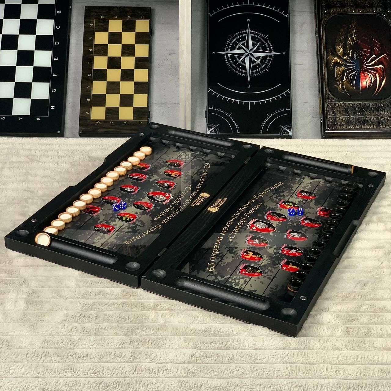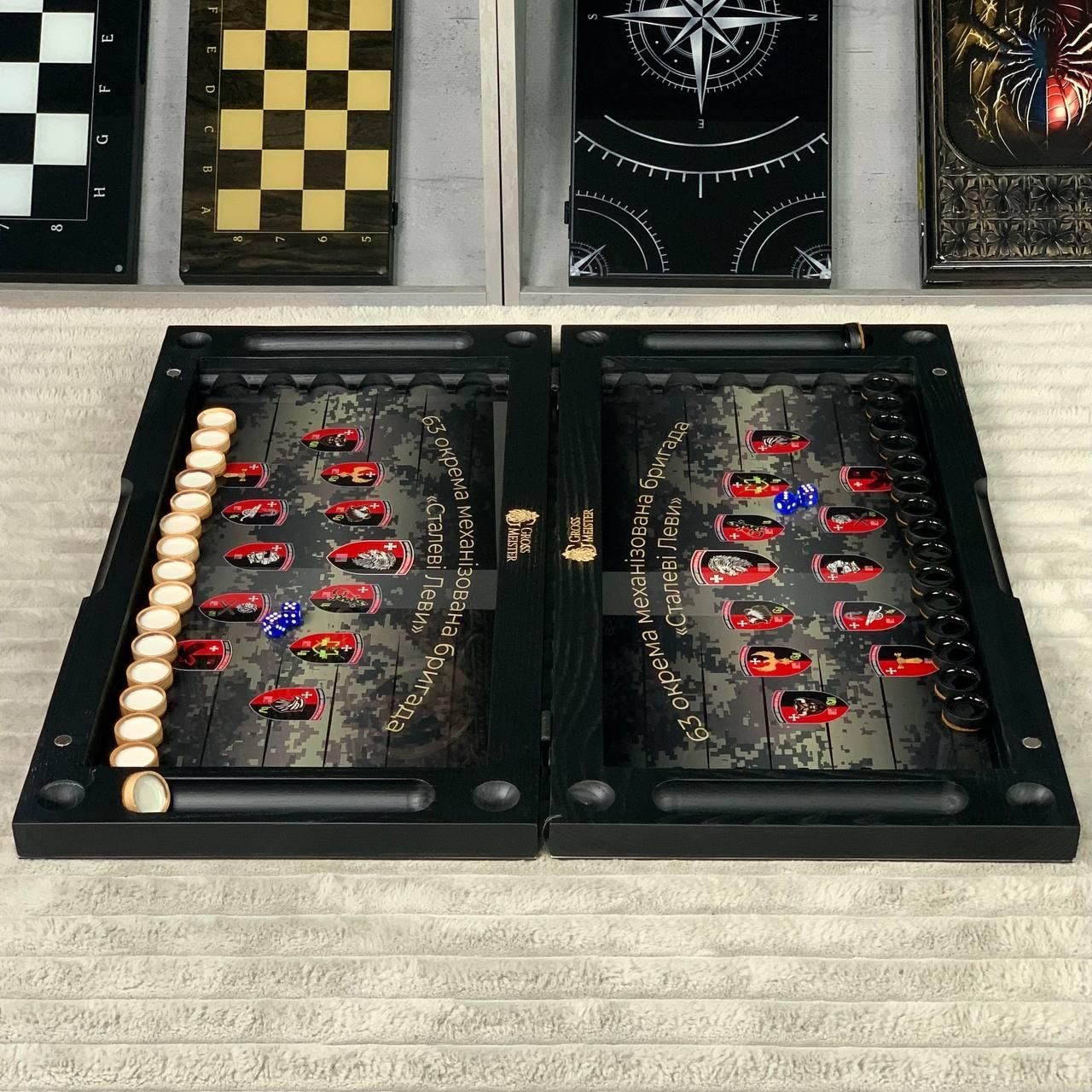 Премиальные нарды из стекла с деревянным каркасом с четким изображением шевронов (УФ-печать) стильный выбор для тех, кто ищет подарочные нарды и хочет купить нарды в Украине. Модель пригодна для коротких и длинных нард, сочетает крепость натурального дерева и эстетику стеклянного поля. Доступная персонализация (логотип, имя, подпись) и дизайн за 24 часа. Отправка в день заказа. Особенности товара Стеклянное игровое поле с УФ-печатью шевронов: ярко, устойчиво к выгоранию и царапинам. Деревянный каркас: надежность, приятная тактильность, премиальный вид. Поддержка формата игры: короткие нарды/длинные нарды. Персонализация под бренд или событие; дизайн за 24 часа. Подарок для дома, офиса, лаунж-зоны; уместны как классические, красивые нарды. Отправка в день заказа по всей Украине. Эти стеклянные нарды – сбалансированное решение для ценителей качества и стиля. Благодаря УФ-печати шевроны смотрятся объемно и контрастно, а деревянный каркас придает конструкции значимости и стабильности на столе. Комплектация подразумевает все, что нужно для игры; по запросу выполним набор в фирменном стиле или с именной гравировкой. Особенности и технические характеристики Тип игры: нарды (короткие/длинные) Материалы: стекло (поле), древесина (каркас) Печать/декор: УФ-печать шевронов Размер (сложные): 60×30×6 см Вес: 8,9 кг Персонализация: да (логотип, имя, надпись), дизайн за 24 нарды на подарок, для дома и интерьера Доставка и оплата Отправка в день заказа (Новая почта/курьер по Украине). Оплата: карта/наплата/безналично. Возврат согласно законодательству Украины. Заказывайте нарды с шевронами уже сегодня – получите стильный набор с персонализацией и быстрой доставкой. Для дизайна обращайтесь: Остались вопросы? Звоните нам. Наши менеджеры всегда на связи и готовы ответить на все интересующие вас вопросы Адрес: Украина г. Стрый, ул. Заньковецкой, дом. 2, второй этаж