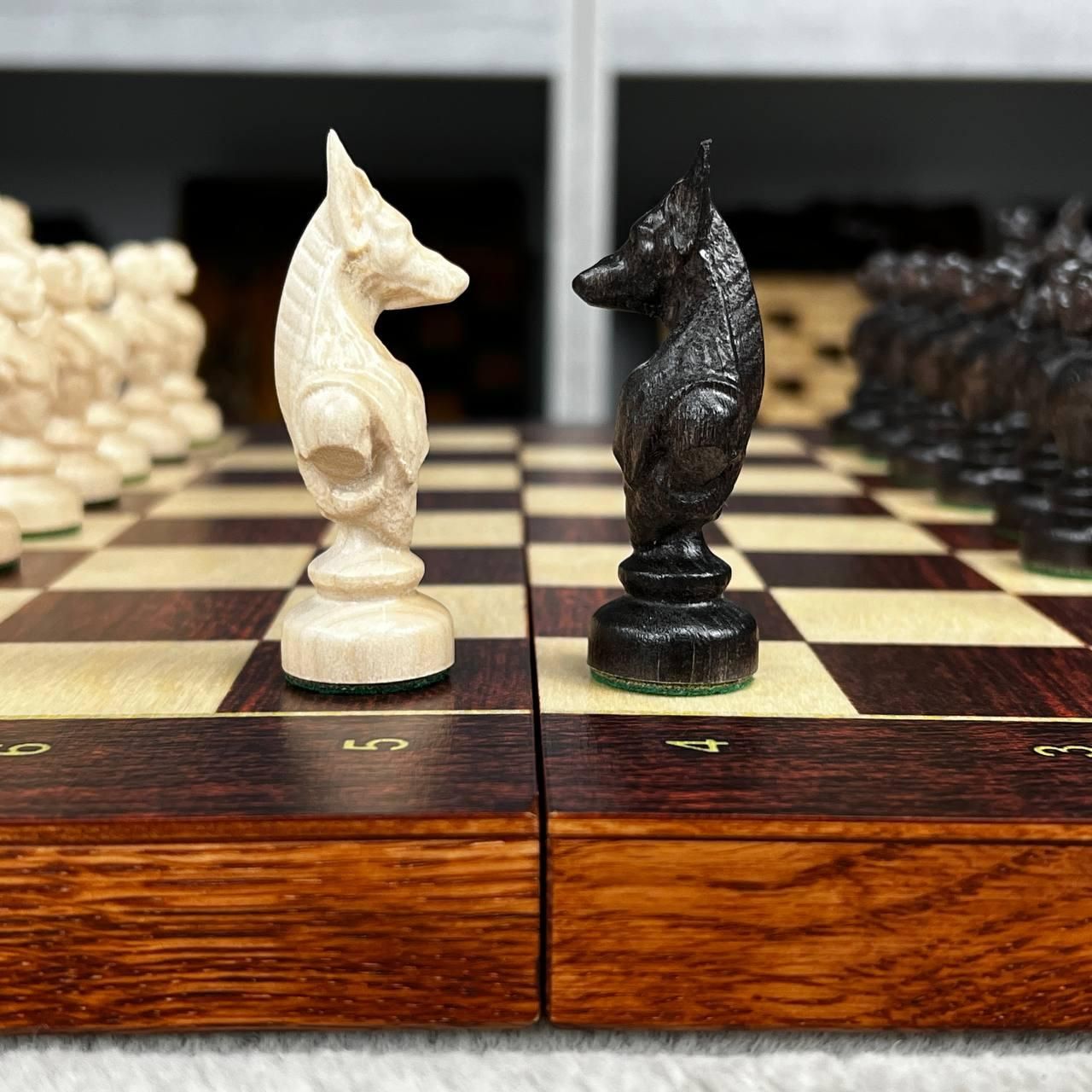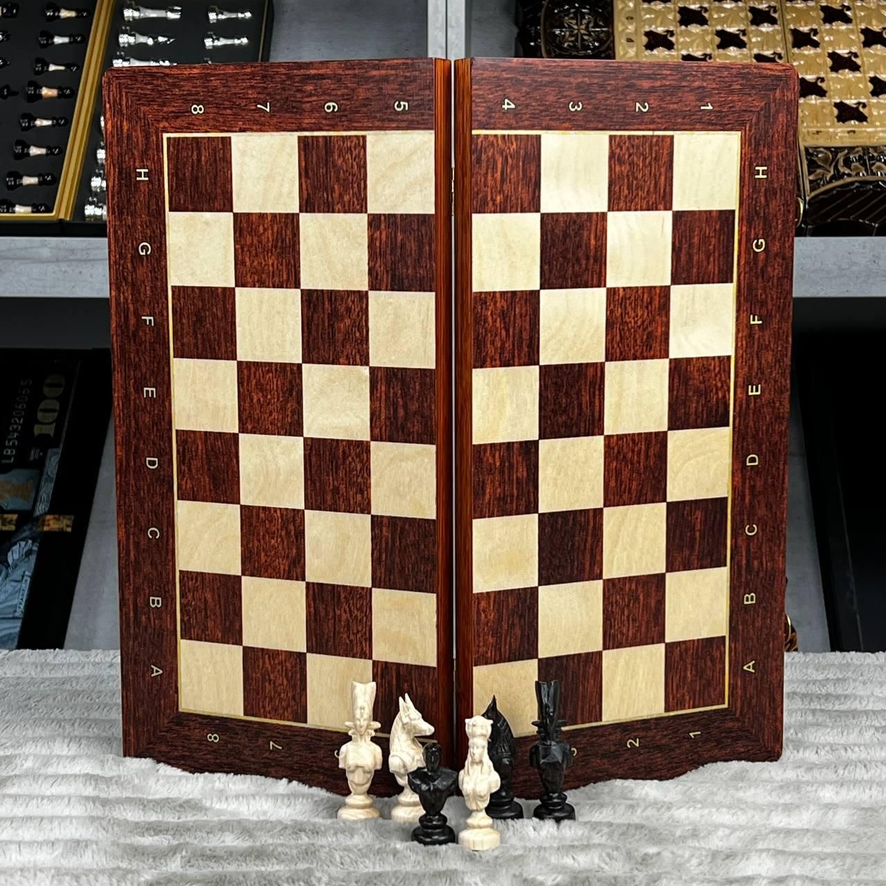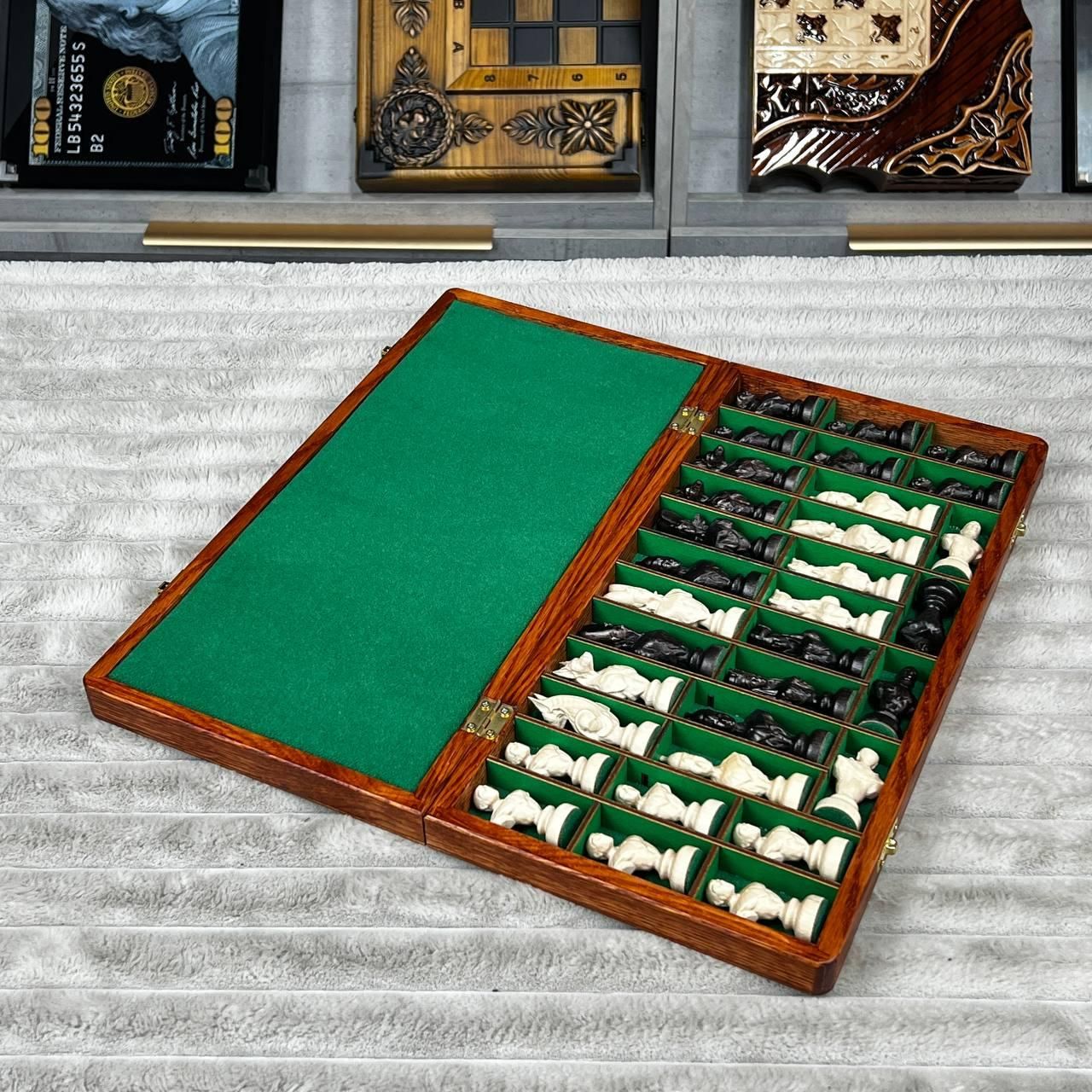 Шахматы деревянные со стилизованными фигурами с обременителями 40х20см.