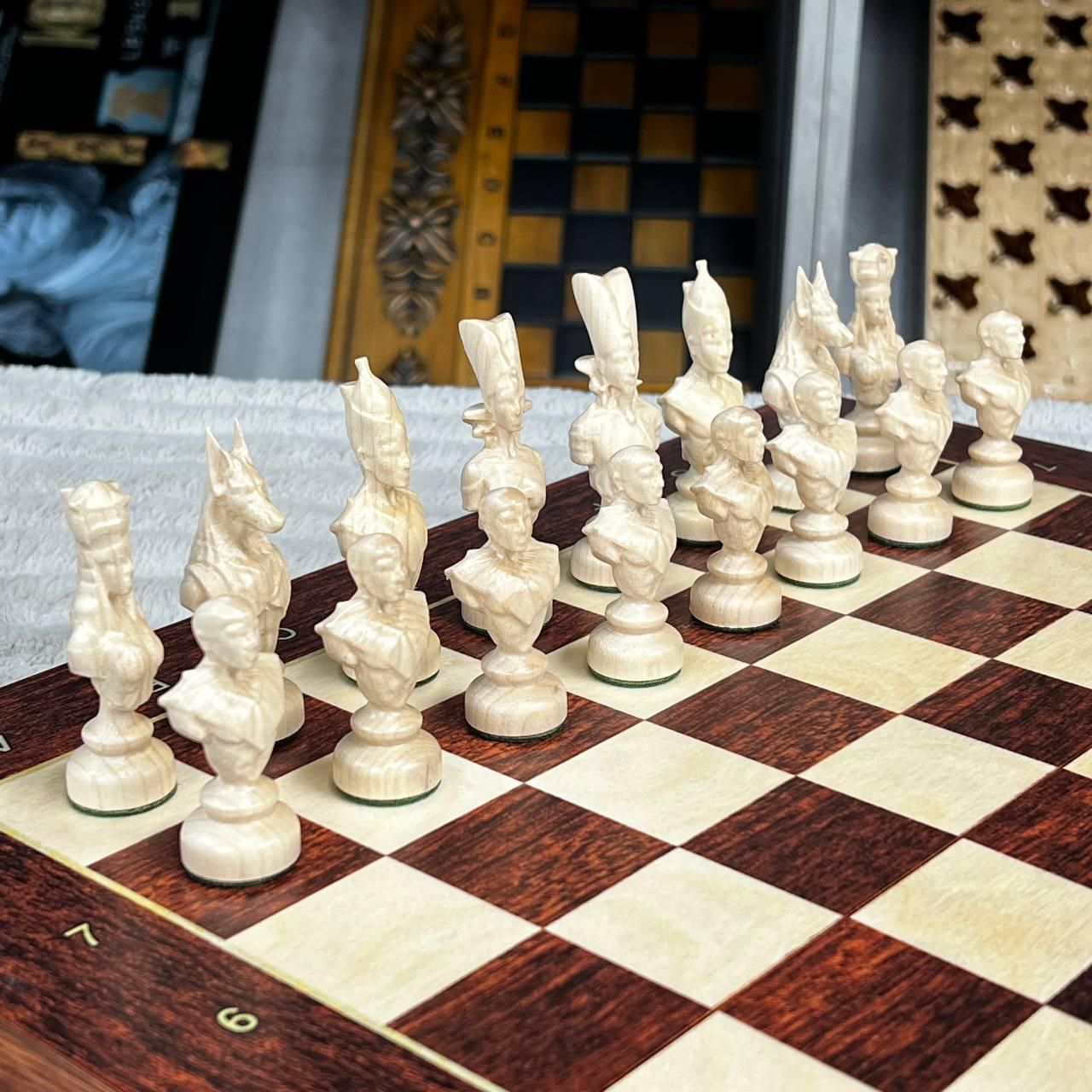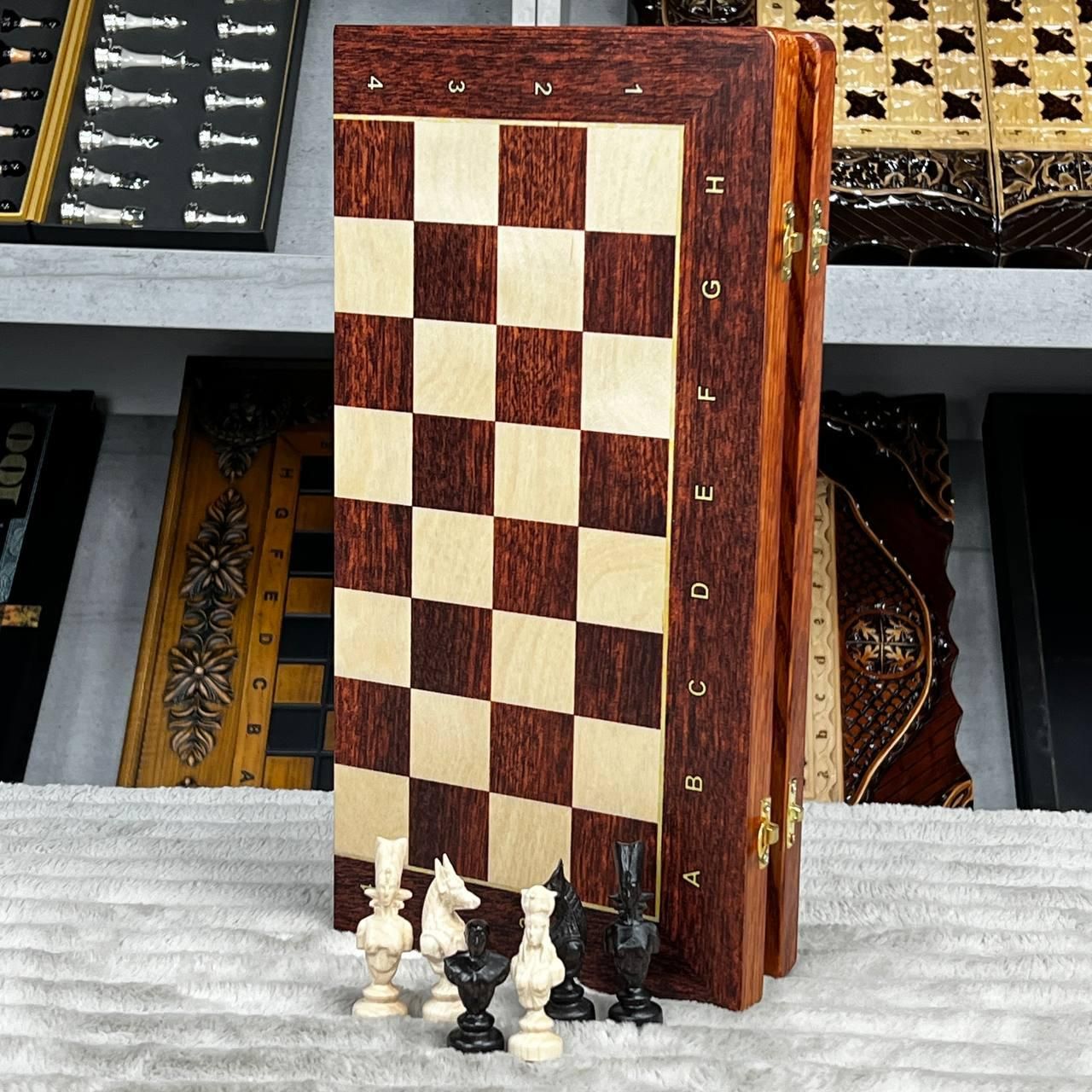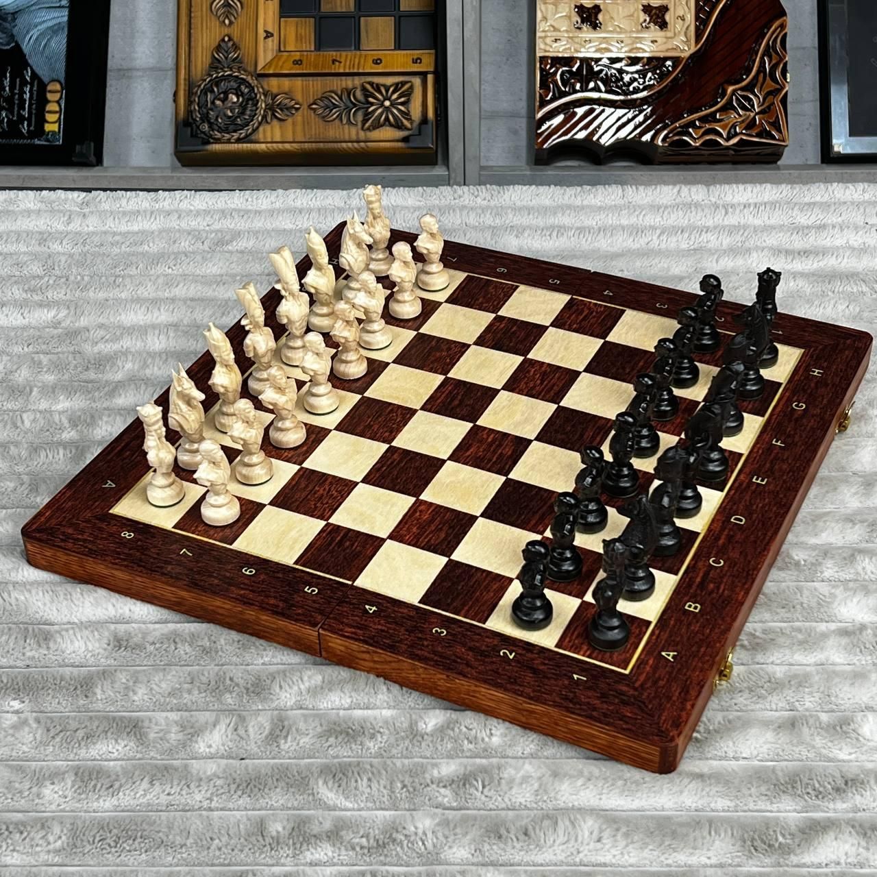 Шахматы деревянные со стилизованными фигурами с обременителями 40х20см.