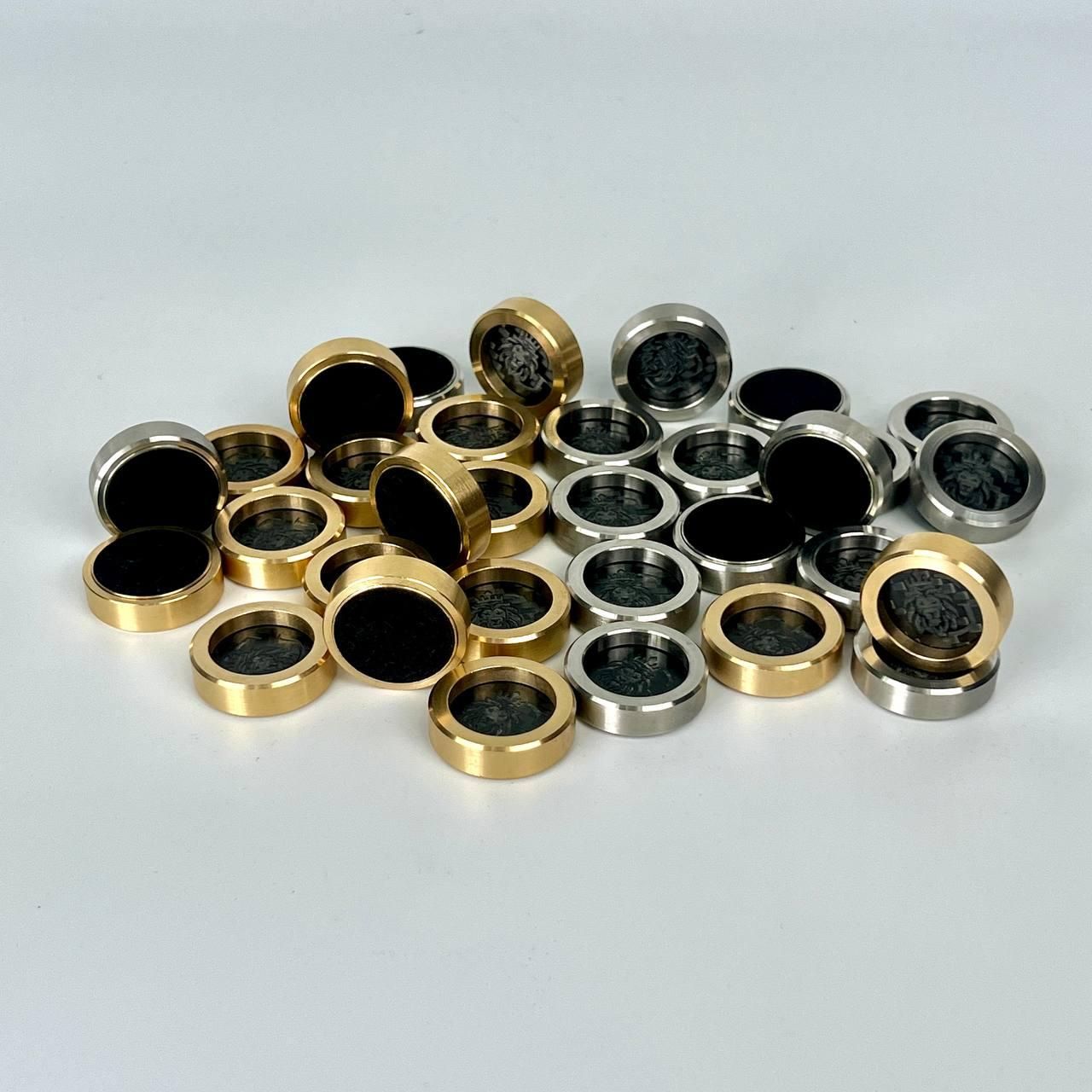 Фишки для нард из нержавеющей стали с карбоном – эксклюзивный подарочный набор Премиальные фишки для нард (шашки для нард) изготовлены из нержавеющей стали – это сочетание элегантности, долговечности и современного дизайна. В центре каждой фишки — карбоновая вставка с гравировкой в виде льва, символизирующая силу, уверенность и победу. Такой набор станет не только дополнением к вашим нардам, но и самостоятельным элементом статусного подарка. Фишки обладают приятным весом, идеальным балансом и комфортным чувством во время игры. Особенности фишек: Изготовлены из нержавеющей стали премиум-качества, стойкой к царапинам и коррозии. В центре - вставка из карбона с гравировкой "Лев". Изысканный блеск металла сочетается с глубиной черного карбона. Идеальны для подарка – стильная, элитная подача. Гармонично сочетаются с нардами из стекла, дерева или металла. Технические характеристики: Характеристика Описание Назначение Фишки/шашки для нард Материал Нержавеющая сталь, карбон Дизайн Карбоновая вставка с гравировкой «Лев» Цвет Серебристый, черный Диаметр 30 мм Высота 9 мм Вес одной фишки 30 г Вес комплекта 985 г Комплектация подарочный набор Персонализация Возможна гравировкой Добавьте роскошь своей игре – заказывайте фишки для нард из нержавеющей стали с карбоном уже сегодня! ???? +380732670070 Остались вопросы? Звоните нам. Наши менеджеры всегда на связи и готовы ответить на все интересующие вас вопросы Адрес: Украина г. Стрый, ул. Заньковецкой, дом. 2, второй этаж
