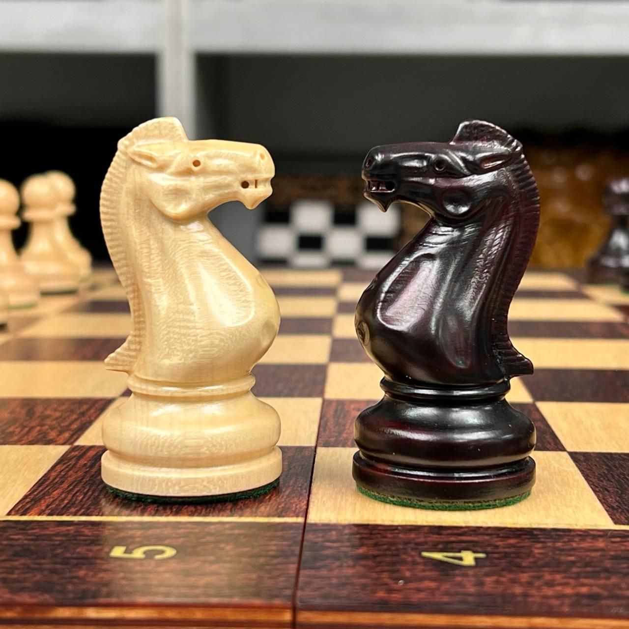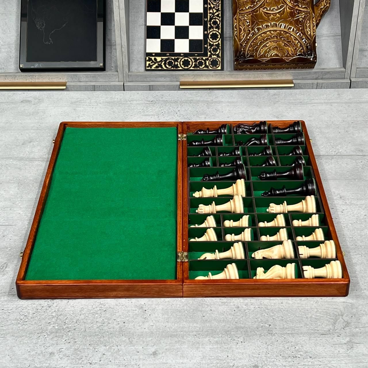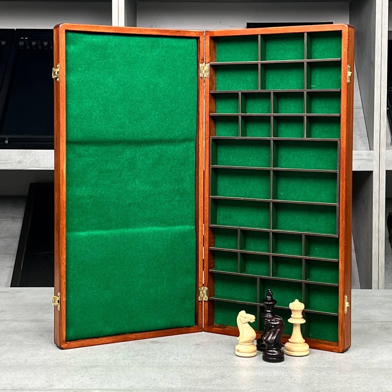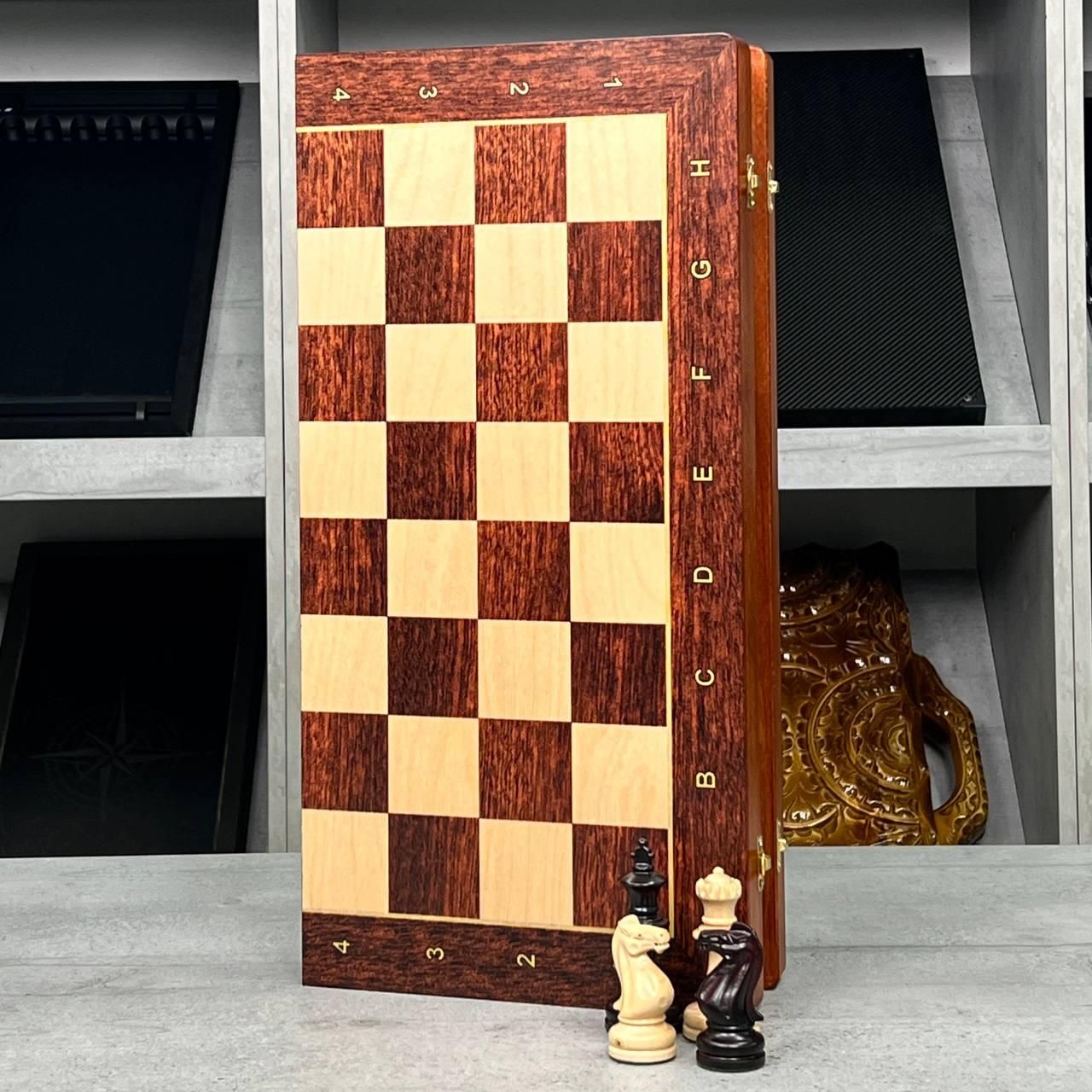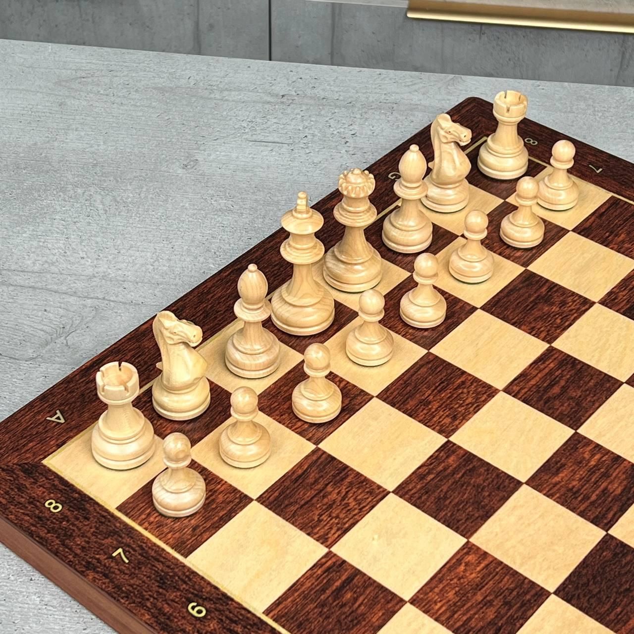 Классический шахматный набор премиумкласса – складная доска 53х53 см и тяжелые фигуры Ищете сочетание профессионального стандарта и эстетики натурального дерева? Этот набор создан для настоящих любителей игры. Благодаря размеру ячейки 5,5х5,5 см, набор полностью отвечает требованиям для турнирных и домашних партий. Почему этот набор стоит вашего внимания: Материалы и покрытия: Доска и фигуры изготовлены из отборной древесины и покрыты профессиональным итальянским двухкомпонентным полуматовым лаком. Он защищает изделие от влаги и царапин, при этом не создает бликов от ламп, что важно для концентрации во время игры. Сложная конструкция: Размер доски в развернутом виде – 53х53 см, в сложенном – 53х26х6 см. Это позволяет удобно сохранять фигуры внутри доски, защищая их от пыли и повреждений. Тяжелые профессиональные фигуры: Каждая фигура оснащена внутренним металлическим утяжелителем. Это придает им стойкость (фигуры не падают при случайных прикосновениях) и приятный вес. Эргономика: Великий король (10 см) и пропорциональная пешка обеспечивают отличную видимость позиции на поле. Технические характеристики: Размер доски: 53х53 см (в сложенном виде 53х26х6 см). Размер ячейки: 5,5х5,5 см. Параметры короля: высота 10 см, основание 4,2 см. Параметры пешки: высота 5 см, основание 3 см. Особенность: отягощенные фигуры, итальянский лак. Эти шахматы купить следует как для профессиональных тренировок, так и на подарок. Это статусный набор, который прослужит десятилетия. Остались вопросы? Звоните нам. Наши менеджеры всегда на связи и готовы ответить на все интересующие вас вопросы Адрес: Украина г. Стрый, ул. Заньковецкой, дом. 2, второй этаж