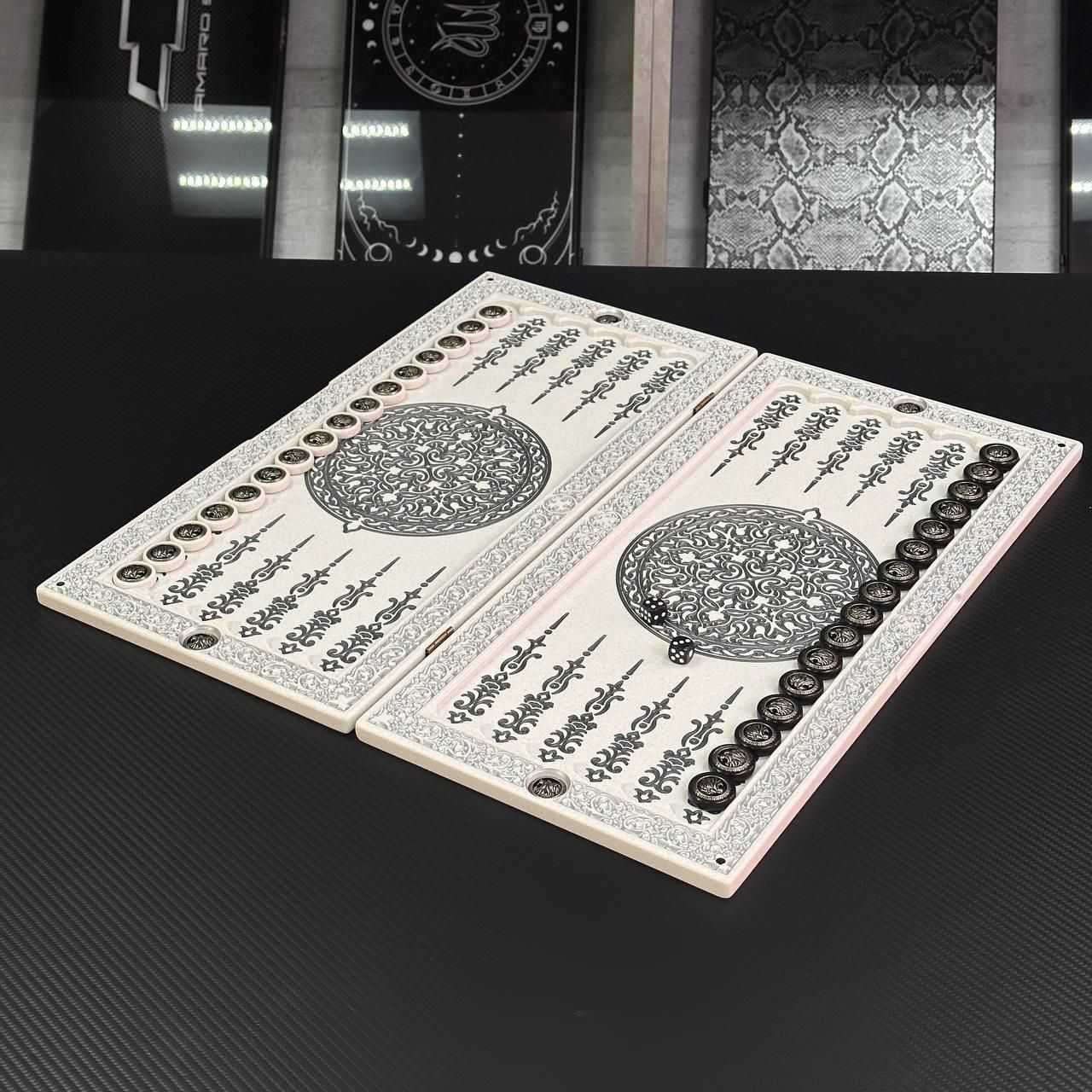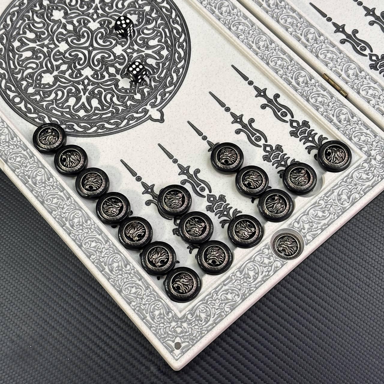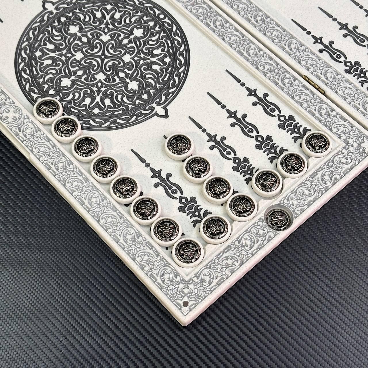 Нарды из камня в белом цвете ЛЕВ 47х24х2см