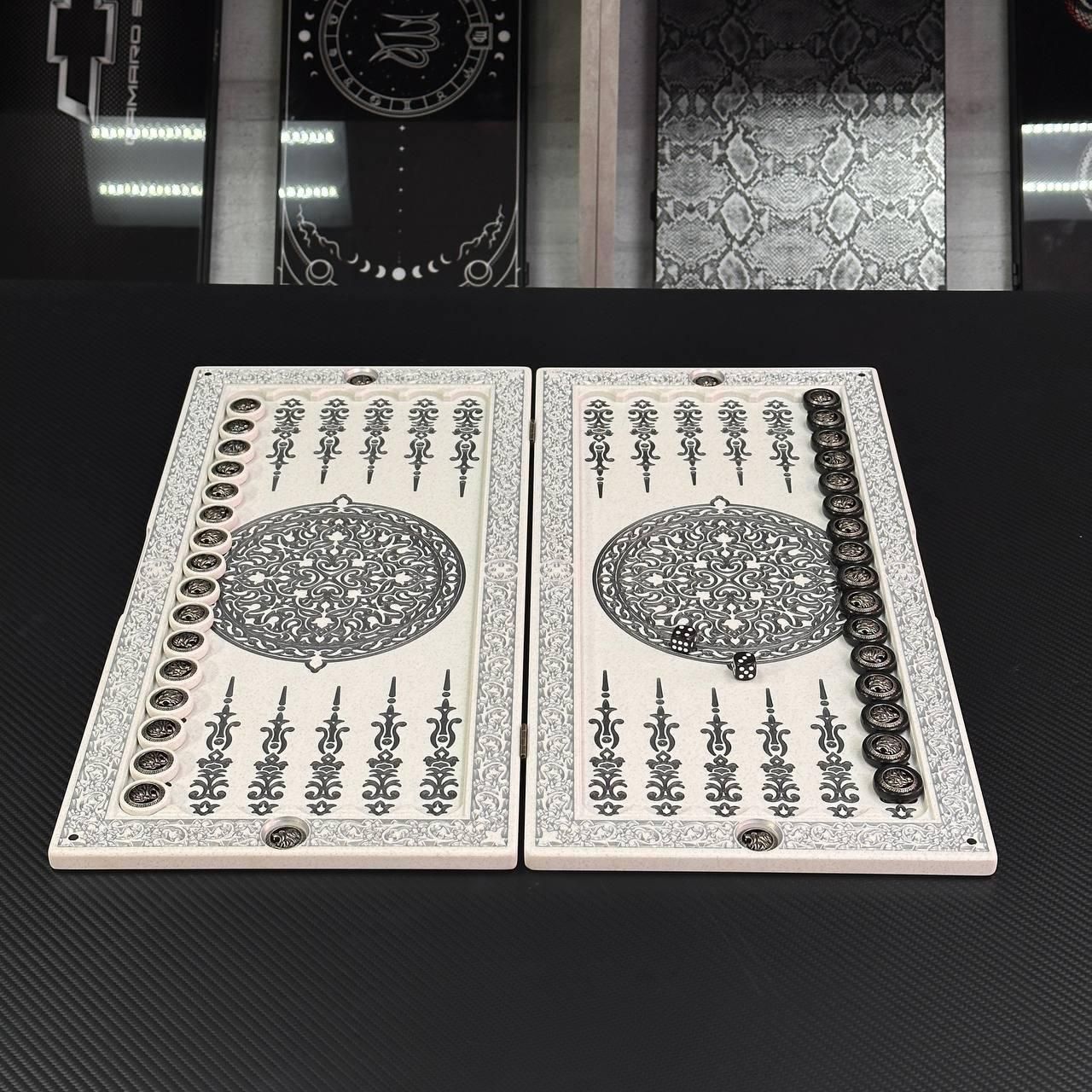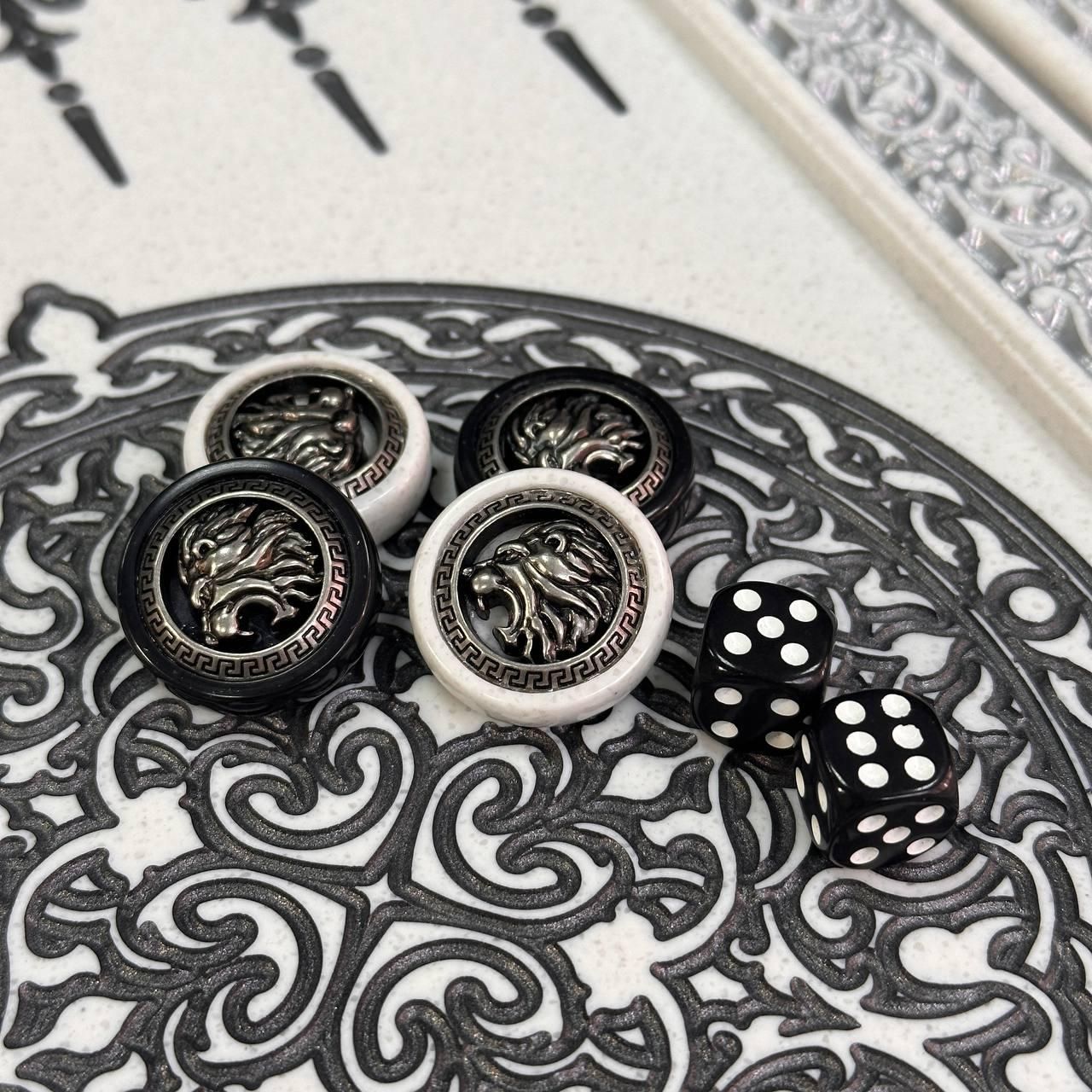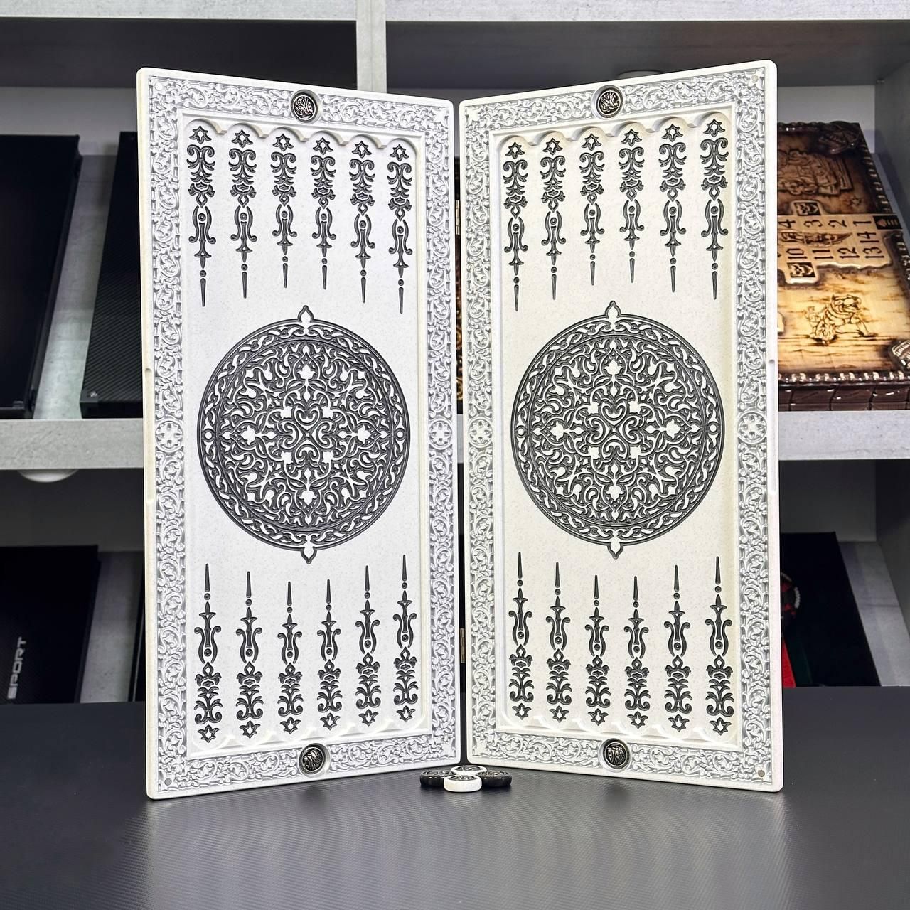 Нарды из камня в белом цвете ЛЕВ 47х24х2см