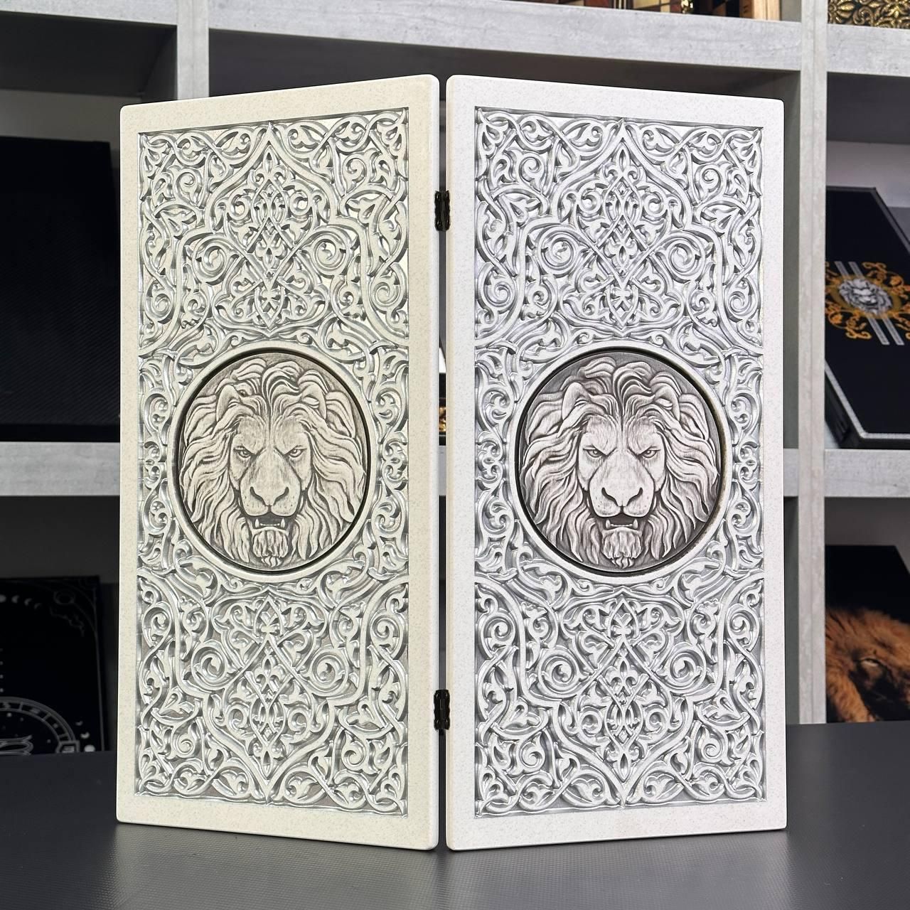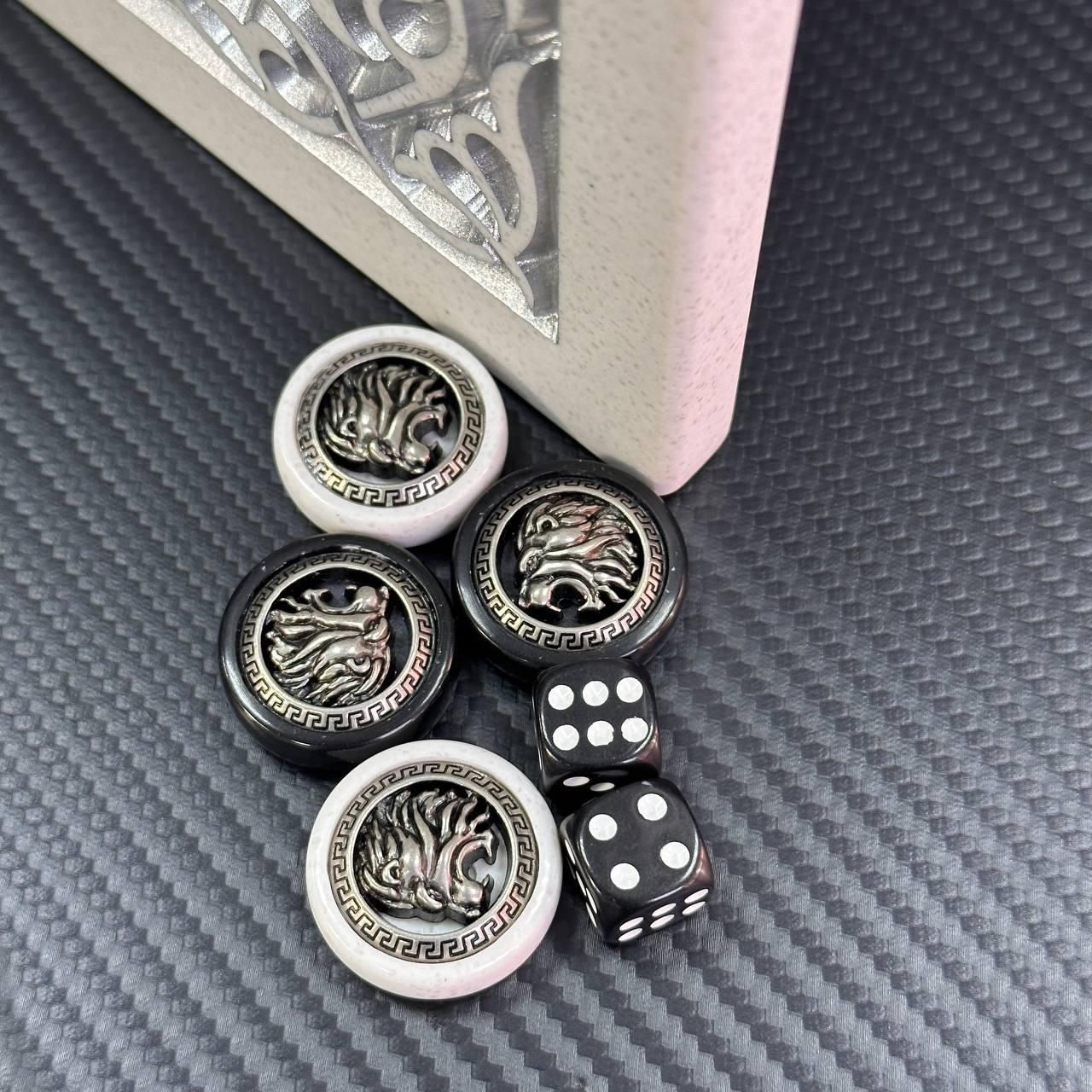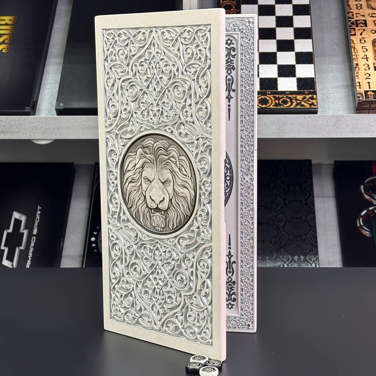 Элегантные нарды из акрилового камня белого цвета с серебряной антикварной краской – это не просто настольная игра, а настоящее произведение искусства. Внешнее оформление с классической резьбой и объемным львом в центре придает изысканность, подчеркивая статус изделия. Фишки со стильными металлическими вставками в львиной форме гармонично дополняют общую концепцию дизайна. Компактный размер (47x24 см) делает игру удобной для использования как дома, так и в путешествиях. Особенности Материал: акриловый камень белого цвета ( Отделка: серебряная антикварная краска, классическая резьба, объемный лев по центру. Фишки: металлические вставки в форме льва. Размеры: 47×24 см. Технические характеристики Тип игры: настольная игра – классический камин. Классический а). резьба, антикварная серебряная краска. Комбинированные, с металлическими вставками. Остались вопросы? Звоните нам. Наши менеджеры всегда на связи и готовы ответить на все ваши вопросы Адрес: Украина г. Стрый, ул.