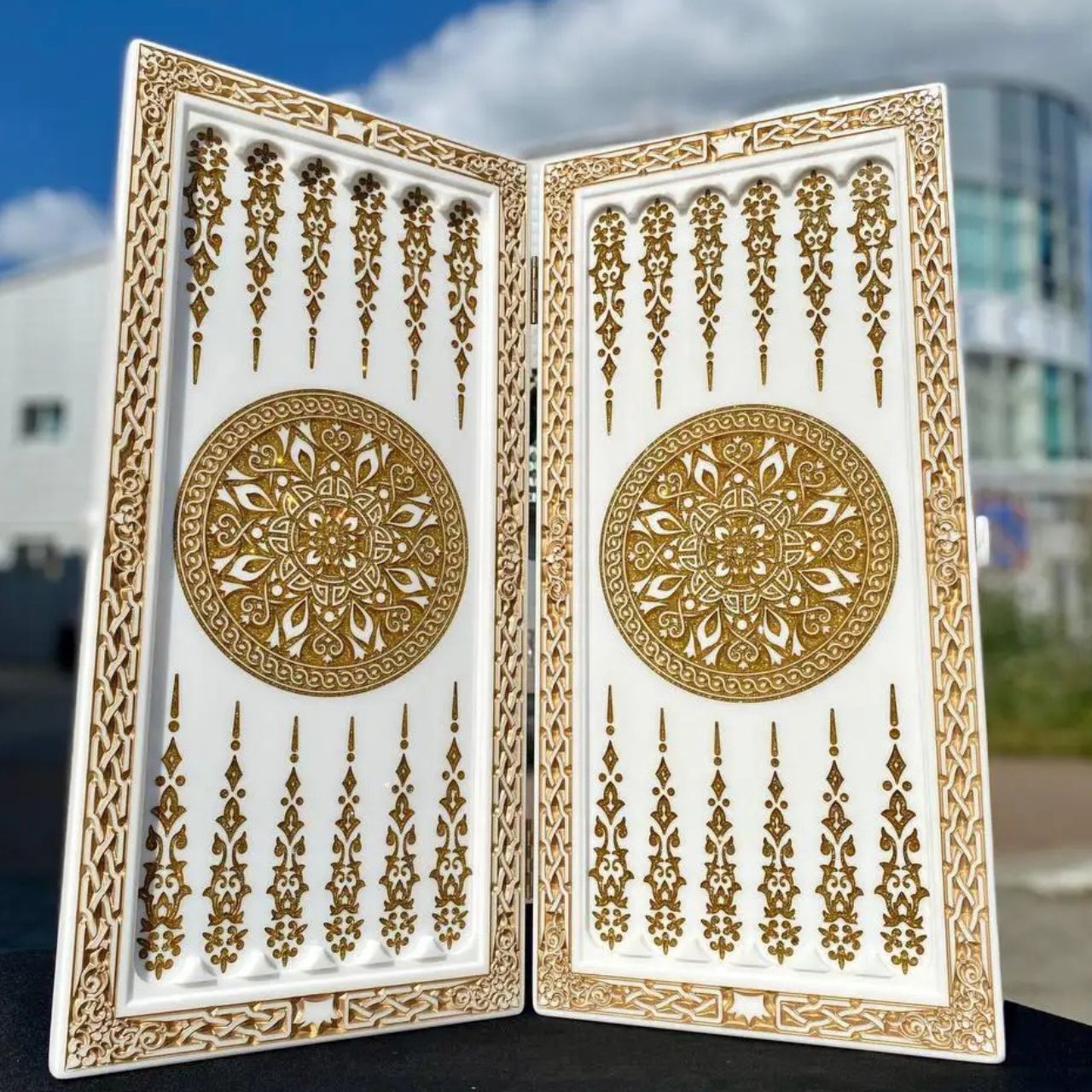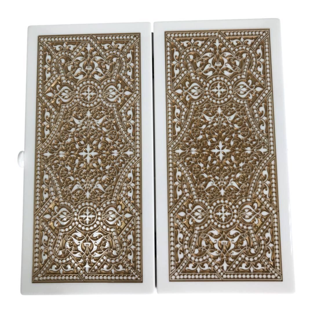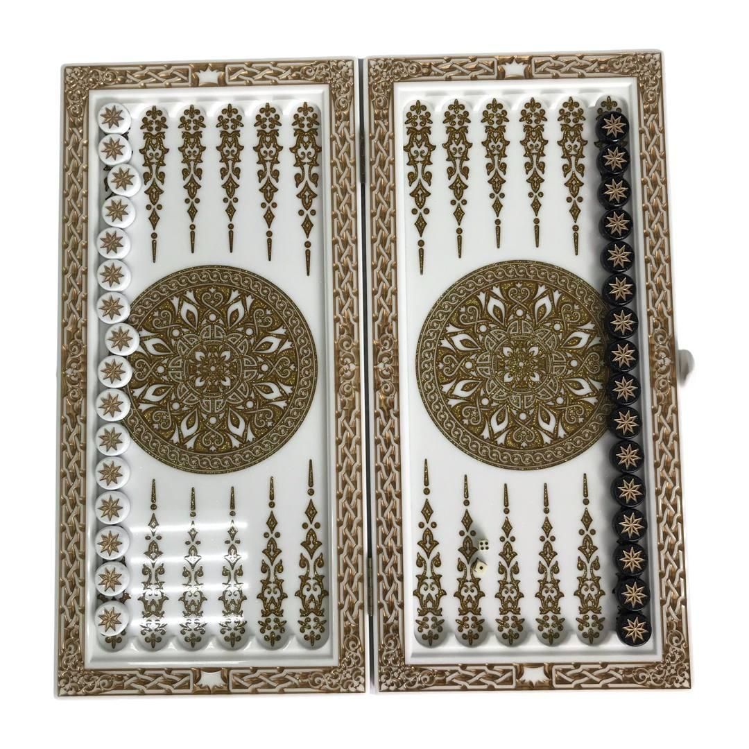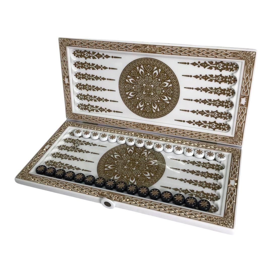 Нарды из белого камня Орнамент 58×28×5см