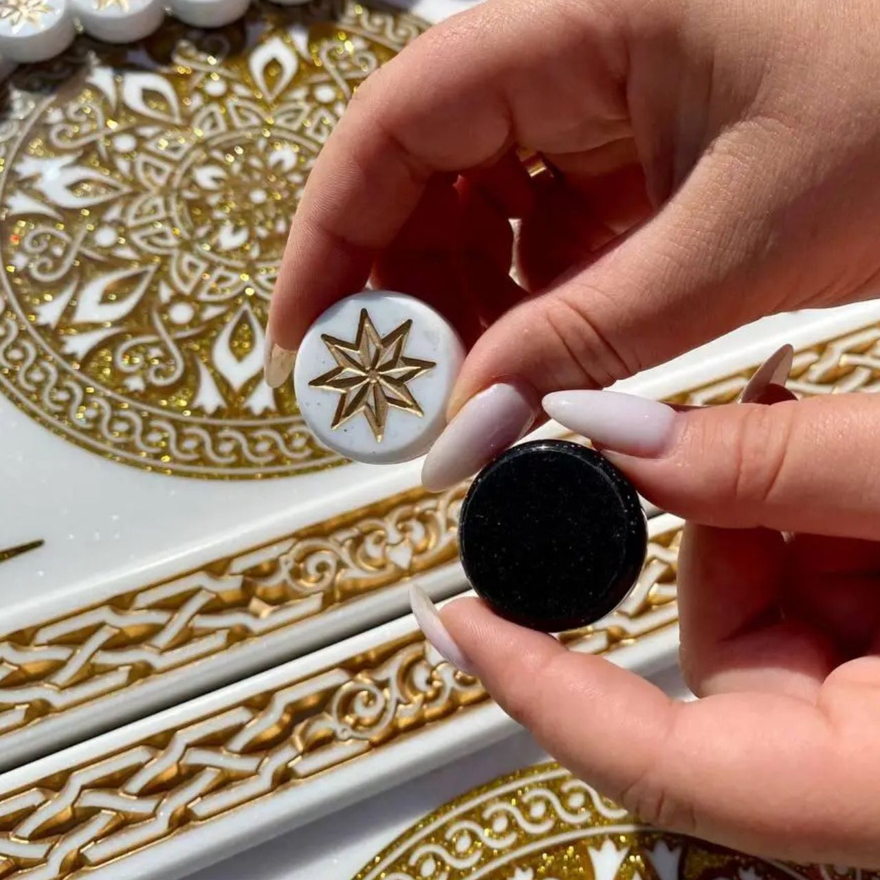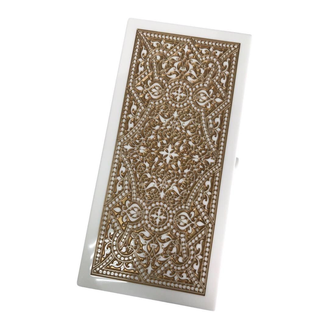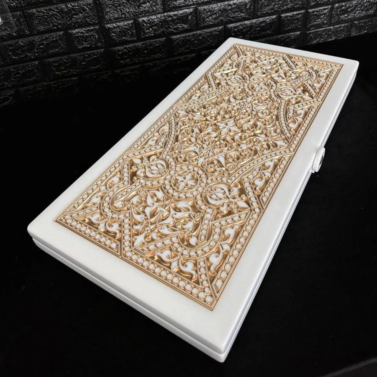 Нарды из белого камня Орнамент 58×28×5см